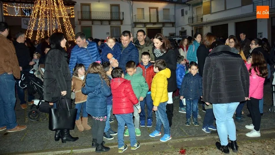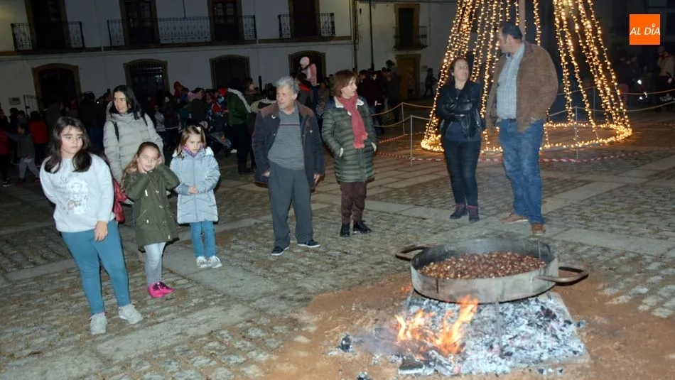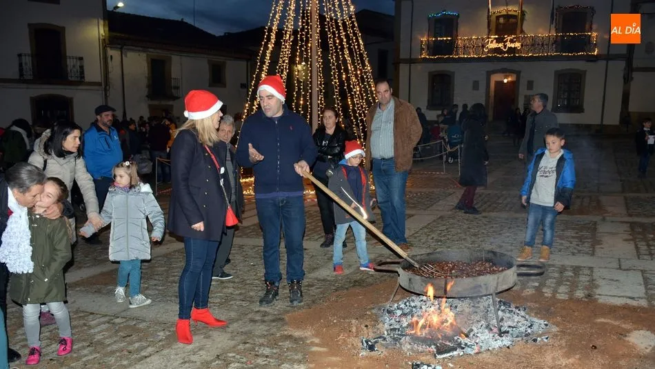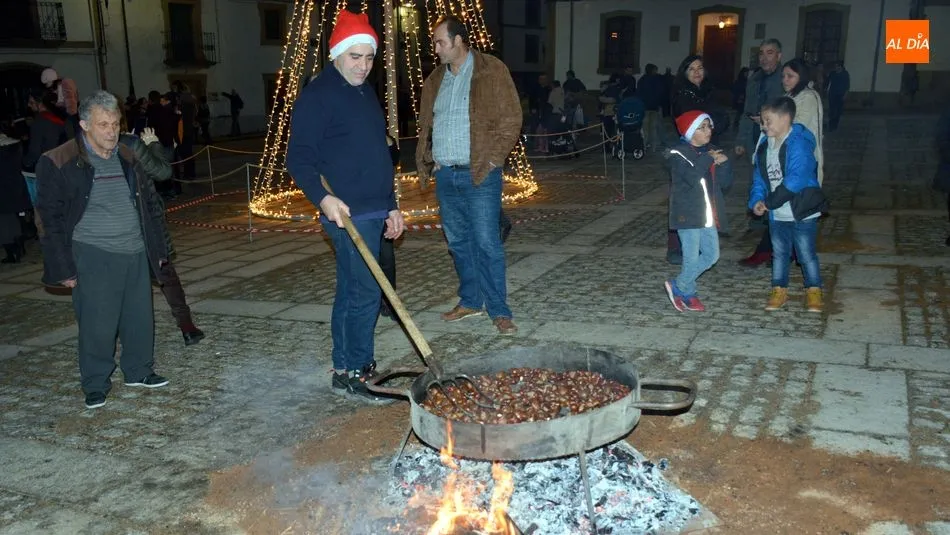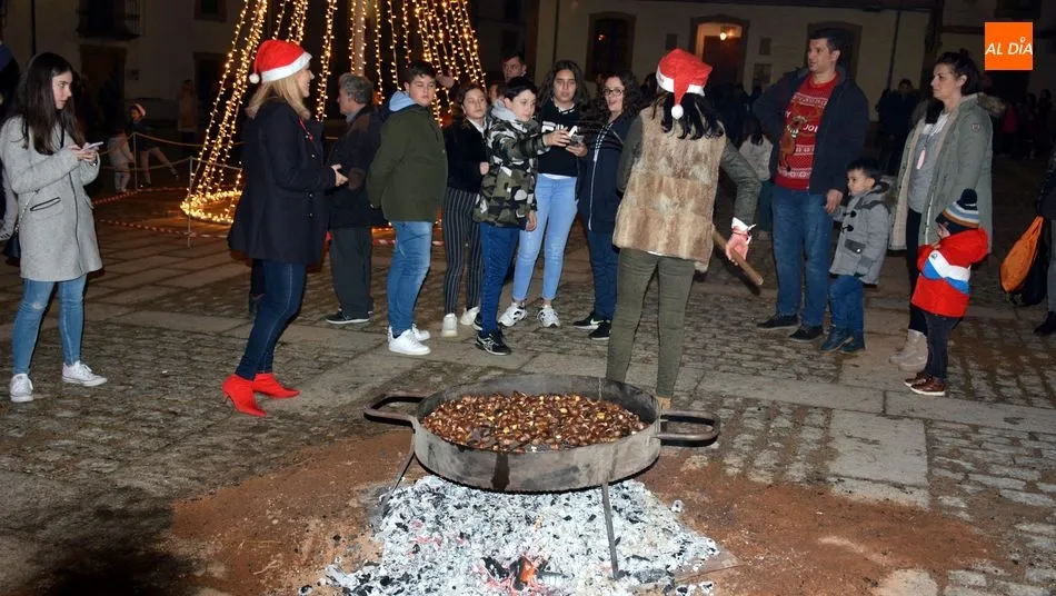 La tarde festiva se cerró con el reparto de castañas, que fueron asadas a la lumbre en la misma Plaza, que ofrece un ambiente navideño con un luminoso árbol y adornos en los balcones de la casa consistorial y la Torre del Reloj.