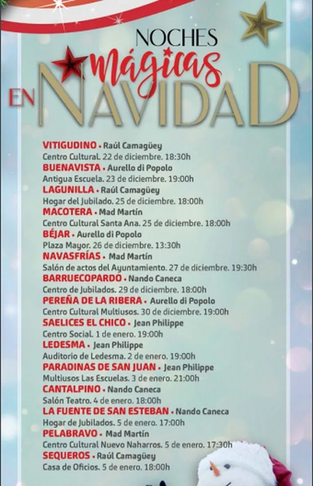 El ciclo pretende acercar a los municipios una serie de propuestas culturales en torno a la magia. En esta primera edición comenzó el pasado domingo en Vitigudino y se prolongará hasta el 5 de enero con una serie de espectáculos de gran calidad con magos de talla internacional.