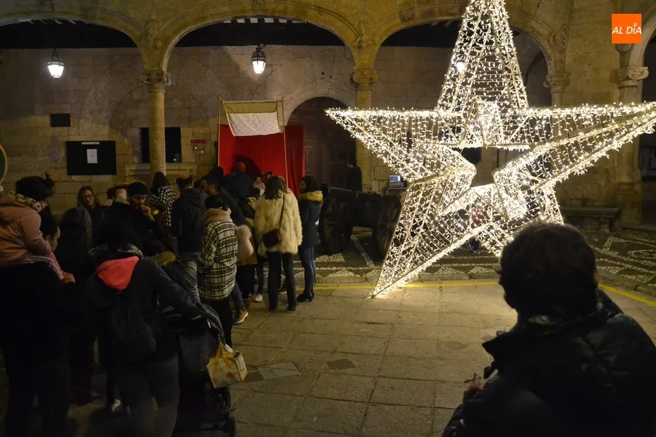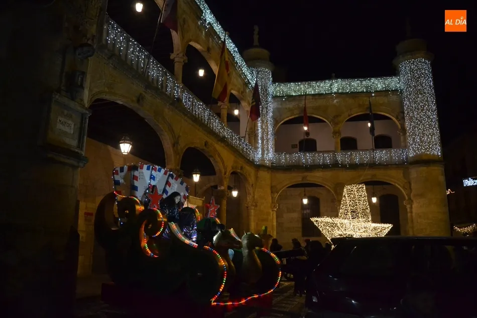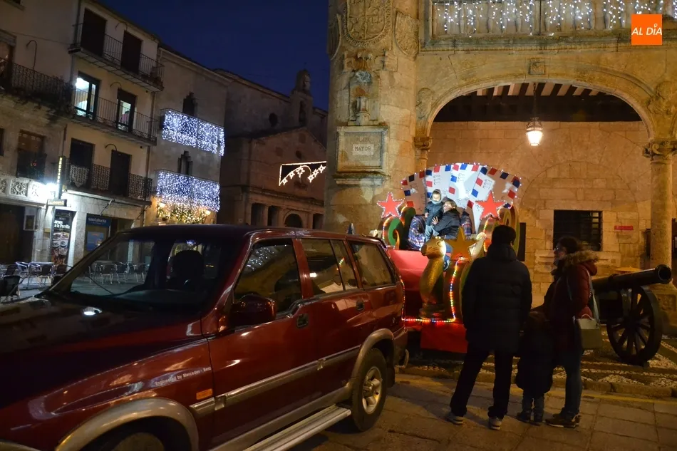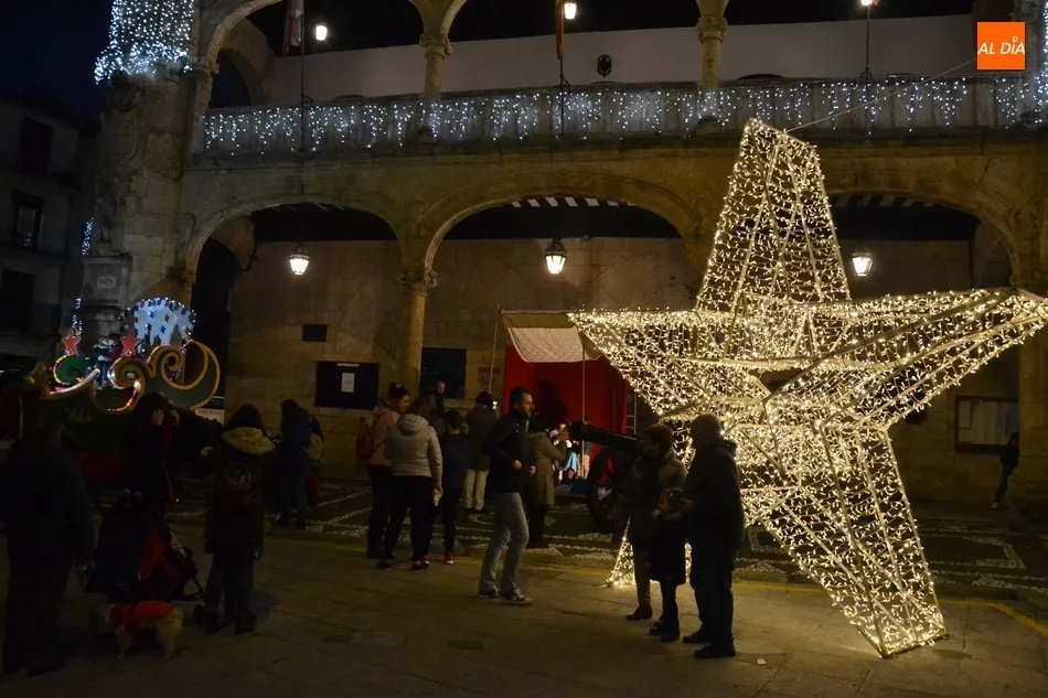La Plaza Mayor de Ciudad Rodrigo, en la que posiblemente es la versión más navideña de su historia, con múltiples luces en balcones y fachadas, con villancicos sonando durante buena parte de cada jornada, con la gran estrella a los pies de la Casa Consistorial, y con el tren infantil en mitad del ágora, vivió durante la tarde del sábado uno de sus momentos más especiales de cada período navideño: la visita del Cartero Real.