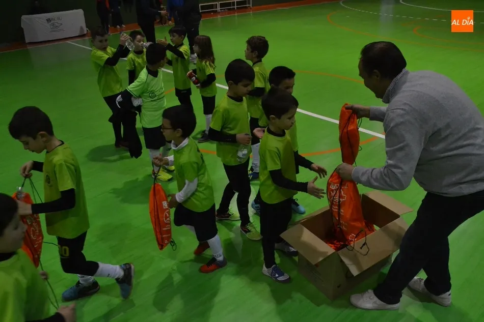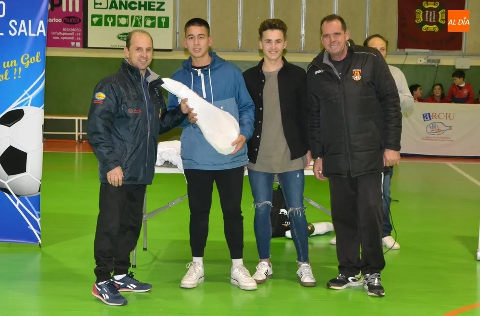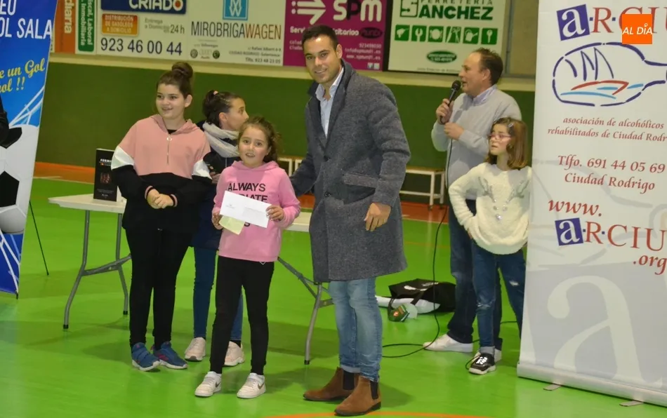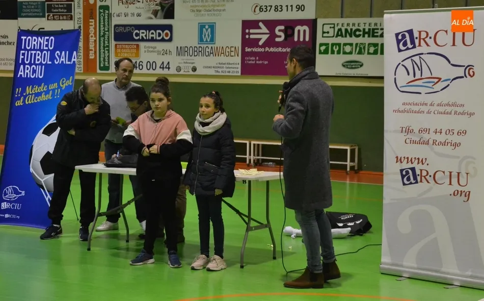 Concluida esta última final, se produjo la entrega de premios, recibiendo todos los equipos participantes en la jornada una paleta, además de llevarse los ganadores de cada categoría un pequeño trofeo de la Concejalía de Deportes. Como cierre definitivo, se procedió a sortear varios regalos: por un lado, una tablet y una cena para 3 personas en el Parador (apareció la ganadora de la cena, quedando pendiente la tablet), y por otro lado, varios productos principalmente de embutido, que se fueron sorteando y sorteando hasta que aparecieron las papeletas cuyos poseedores estaban todavía en el Pabellón.