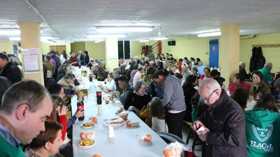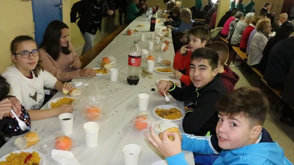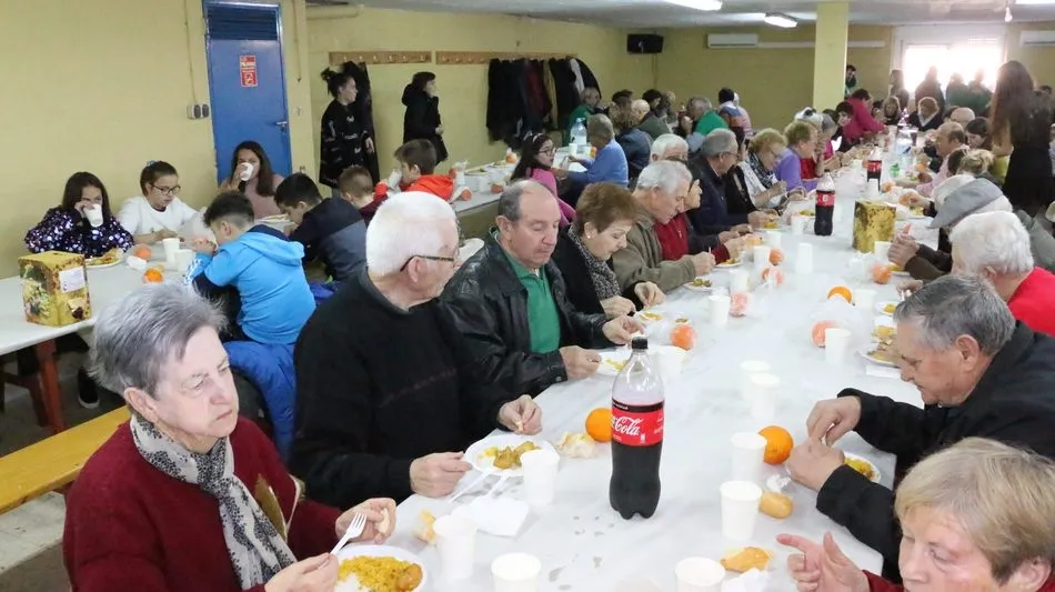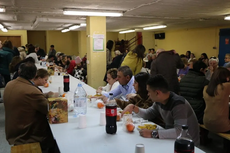 Vecinos de Aldeadávila, pero también de Vitigudino, La Vídola, Cabeza de Framontanos, Villarino?, así hasta un largo etcétera de pueblos, dieron cuenta de la paella promovida por un grupo de vecinos de Aldeadávila en la séptima edición de su Navidad Solidaria.