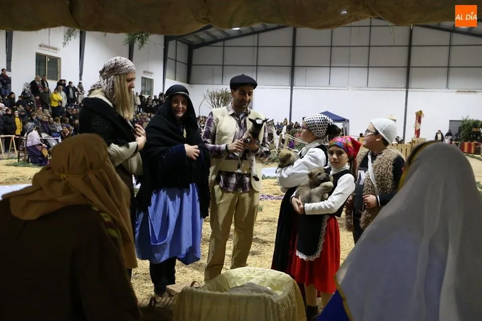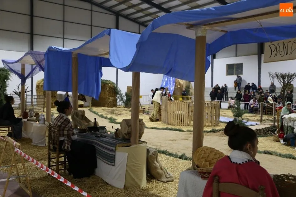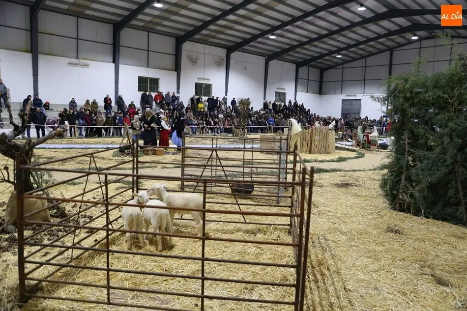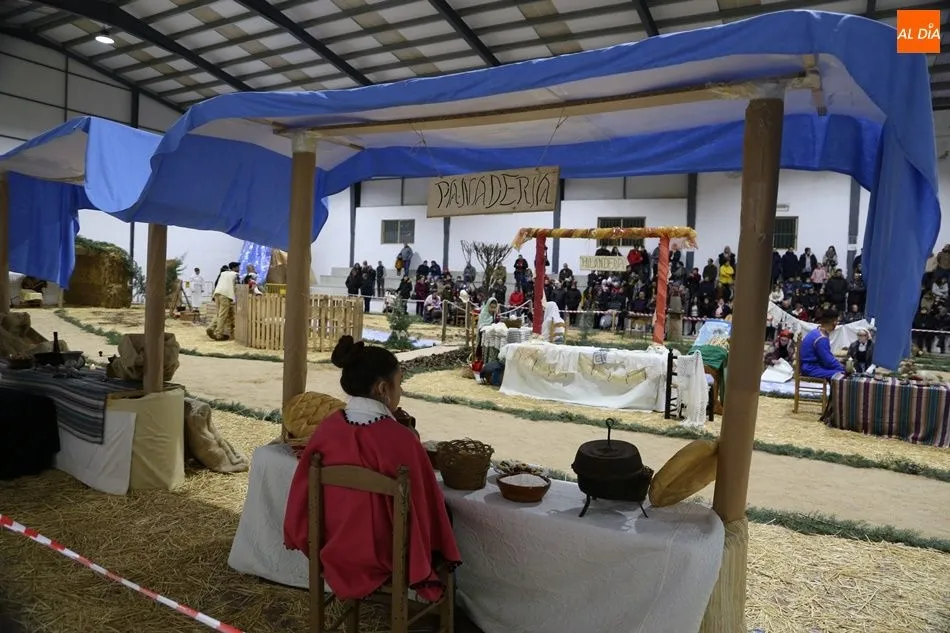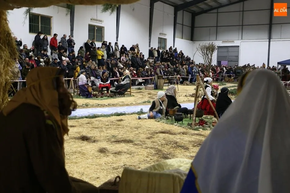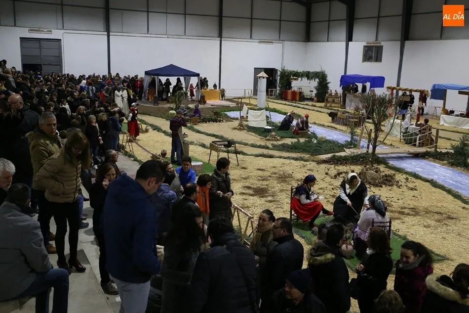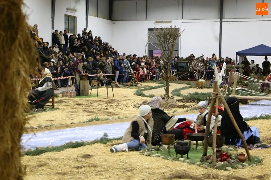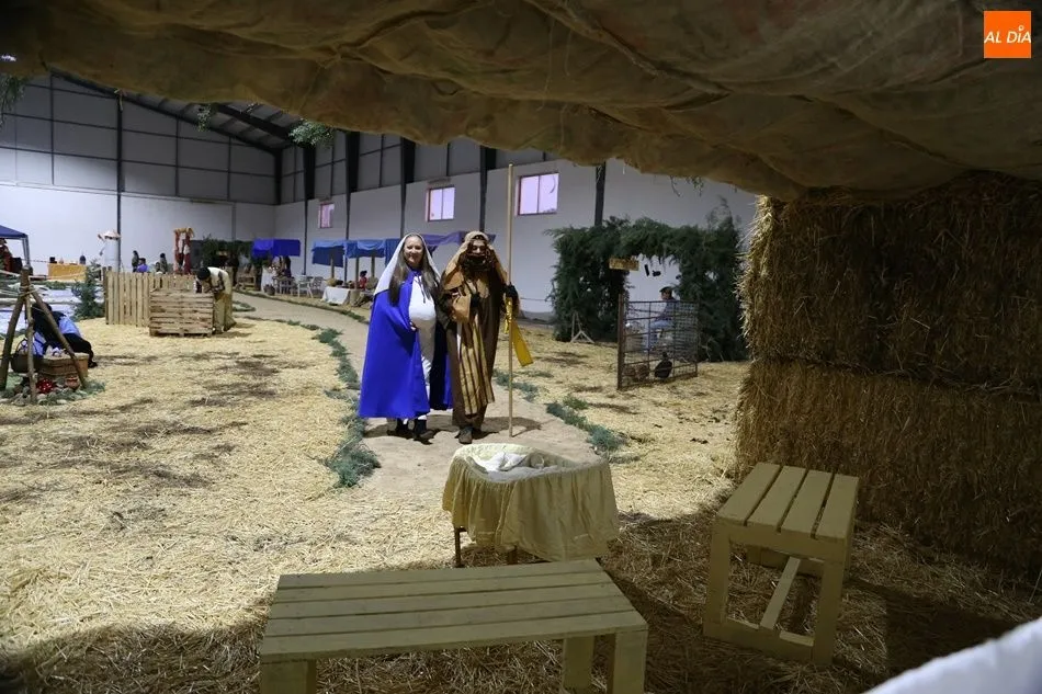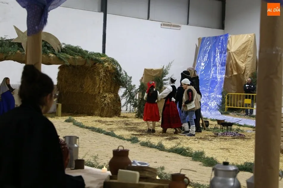 Babilafuente ha acogido este domingo un belén viviente en el pabellón municipal, donde se han citado decenas de vecinos para contemplar la representación del nacimiento de Jesús. El polideportivo ha sido ambientado con la instalación del portal, coronado por una estrella, y diversos puestos, como una panadería y una hilandería.