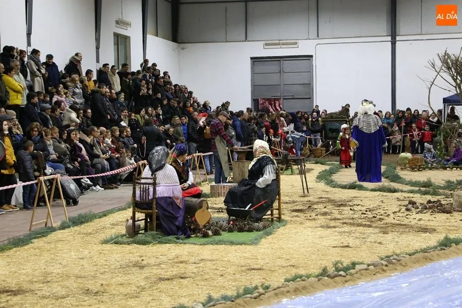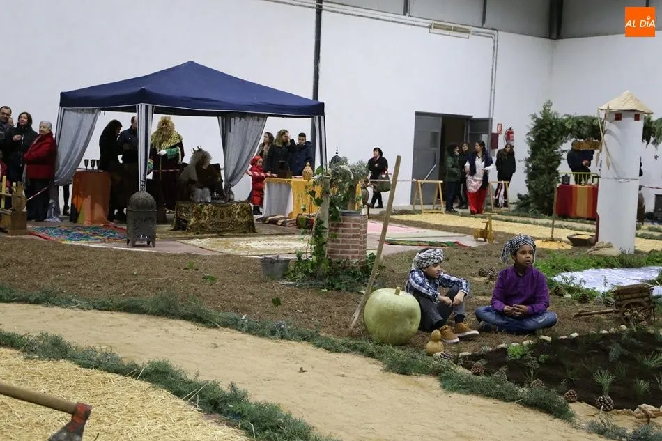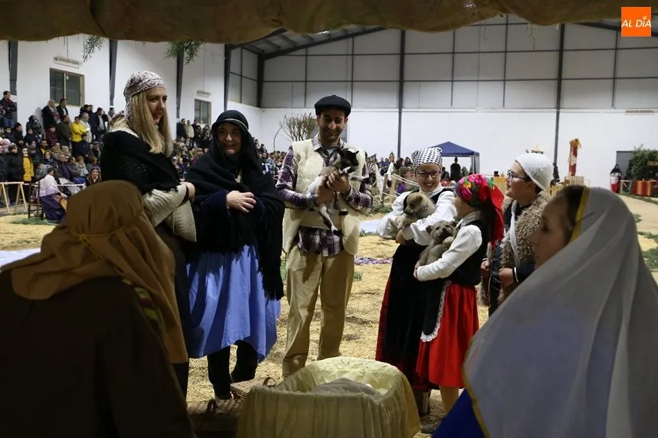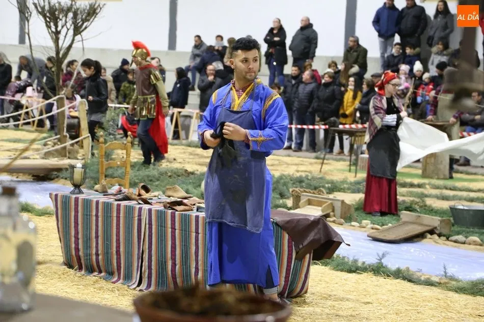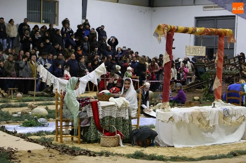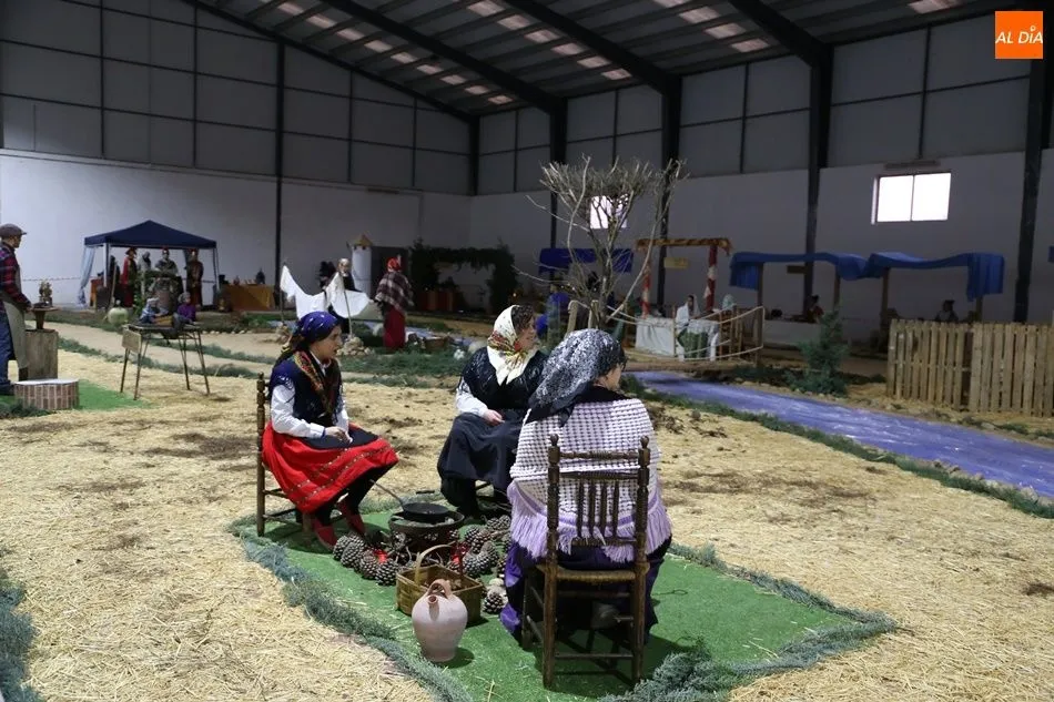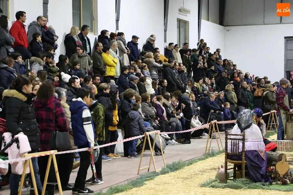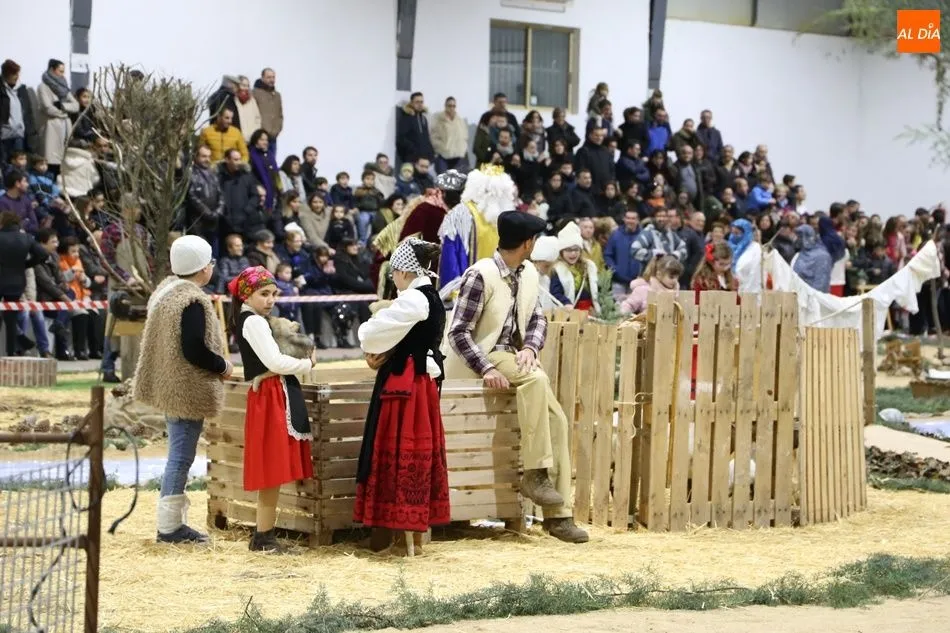 Babilafuente ha acogido este domingo un belén viviente en el pabellón municipal, donde se han citado decenas de vecinos para contemplar la representación del nacimiento de Jesús. El polideportivo ha sido ambientado con la instalación del portal, coronado por una estrella, y diversos puestos, como una panadería y una hilandería.