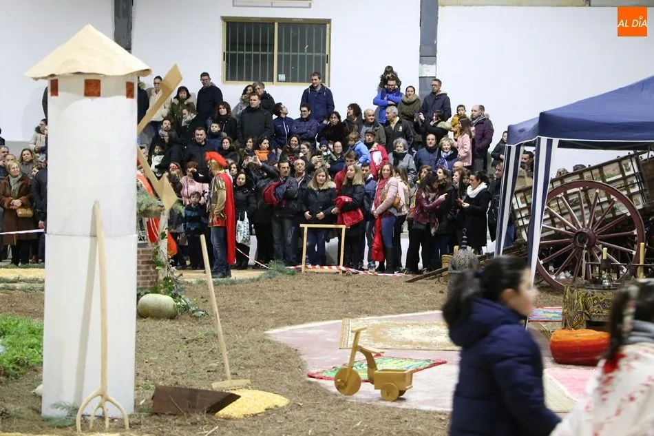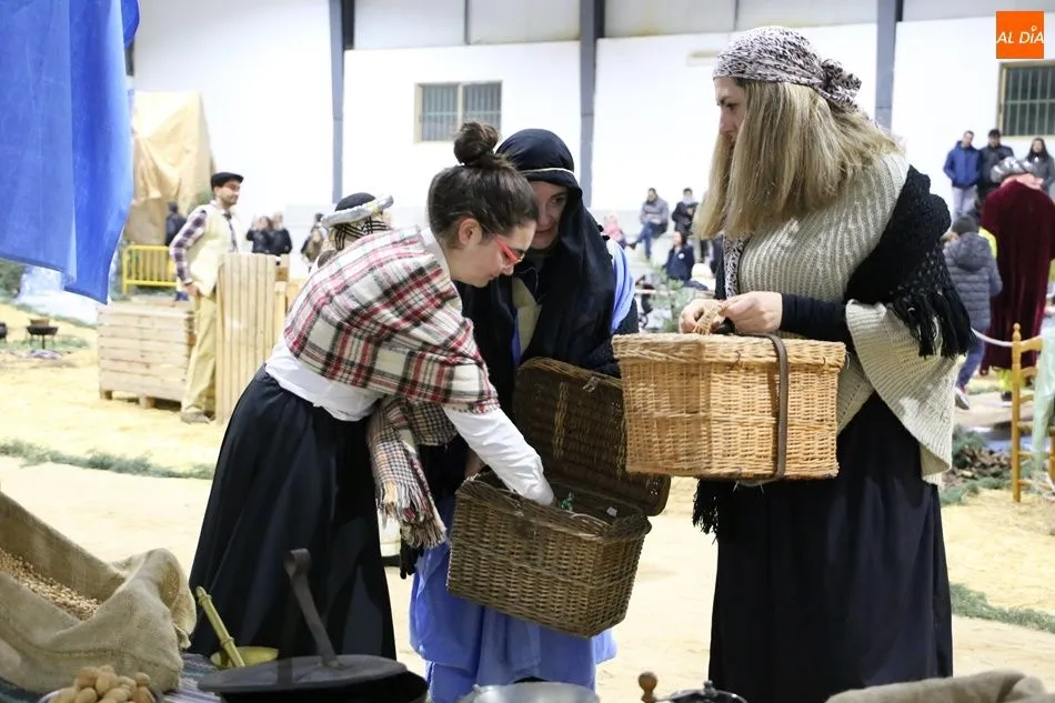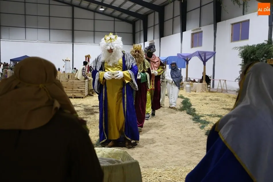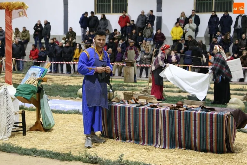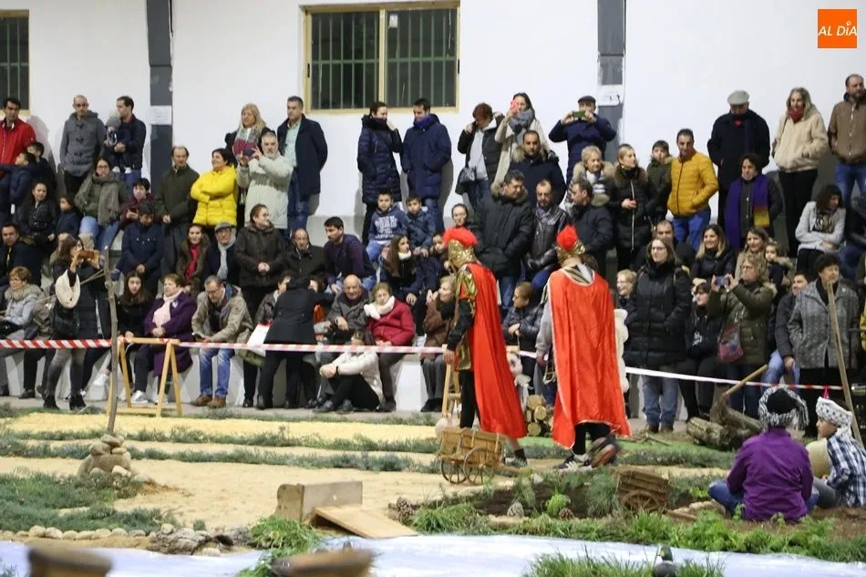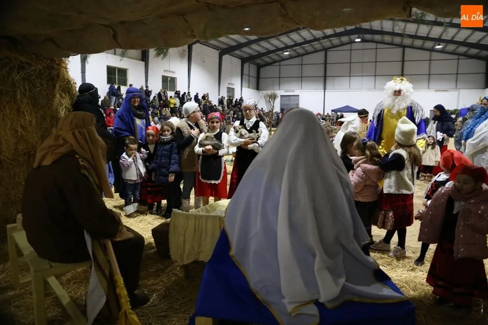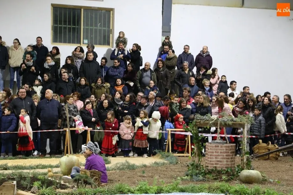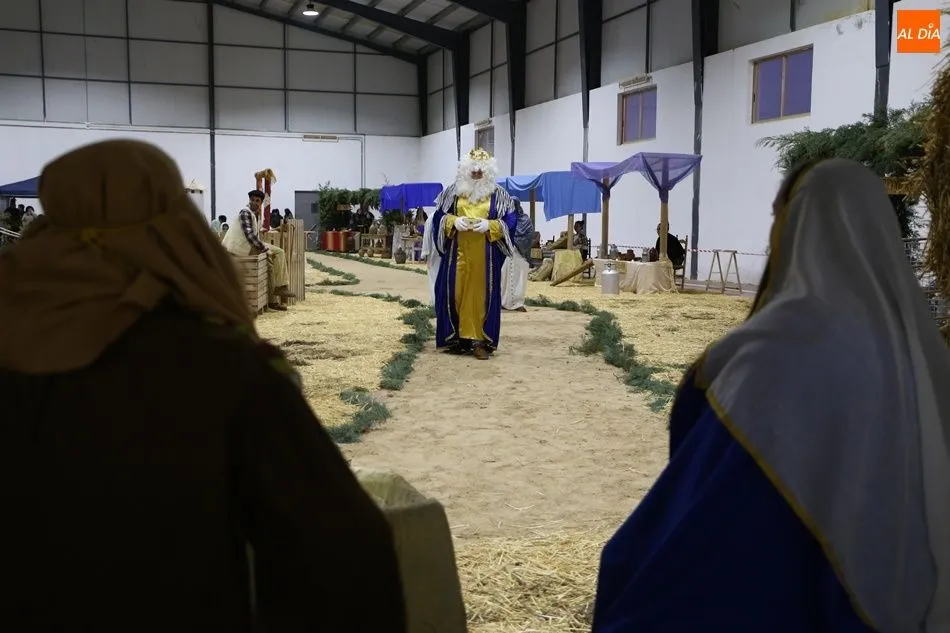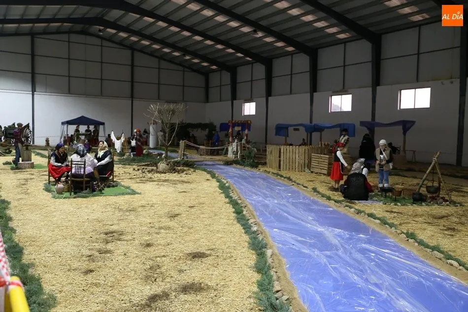 Babilafuente ha acogido este domingo un belén viviente en el pabellón municipal, donde se han citado decenas de vecinos para contemplar la representación del nacimiento de Jesús. El polideportivo ha sido ambientado con la instalación del portal, coronado por una estrella, y diversos puestos, como una panadería y una hilandería.