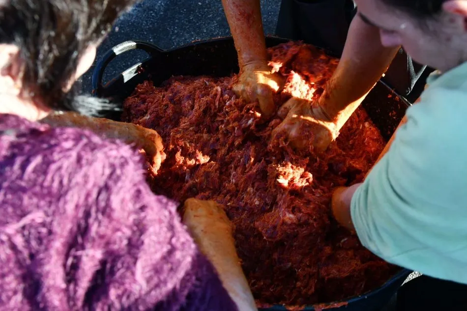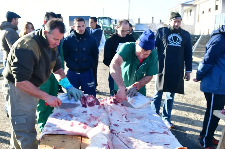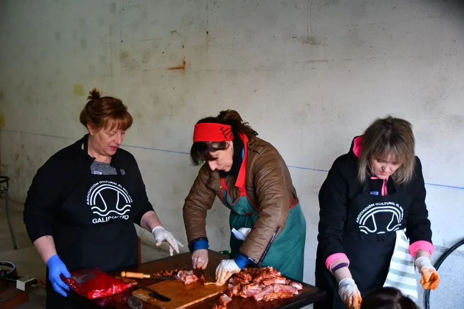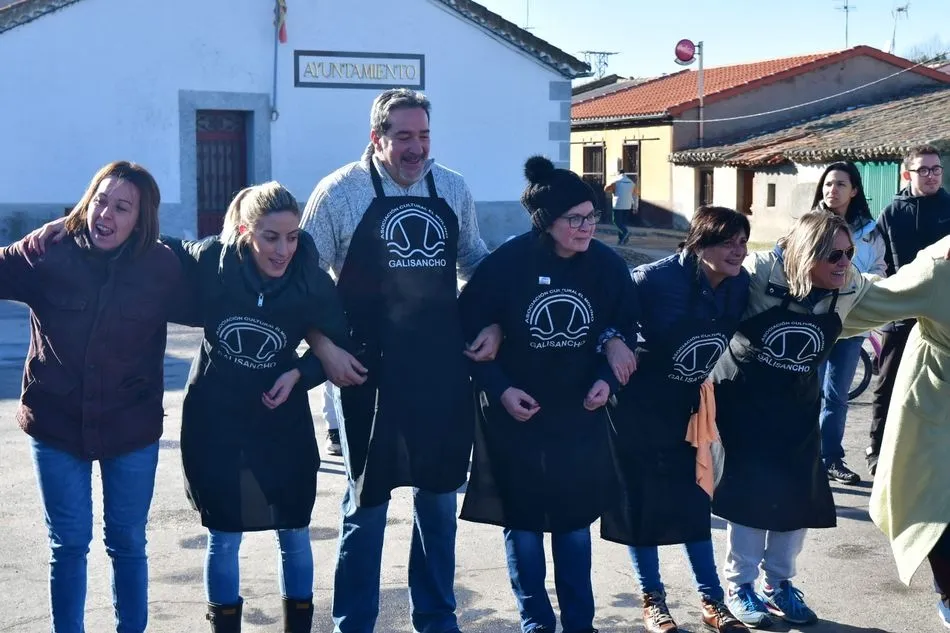 Durante la jornada del sábado los vecinos de Galisancho participaron en el sacrificio, chamuscado y despiece del cerdo. Todos los asistentes pudieron degustar las tradicionales perrunillas con aguardiente, el hígado encebollado y la jeta asada.