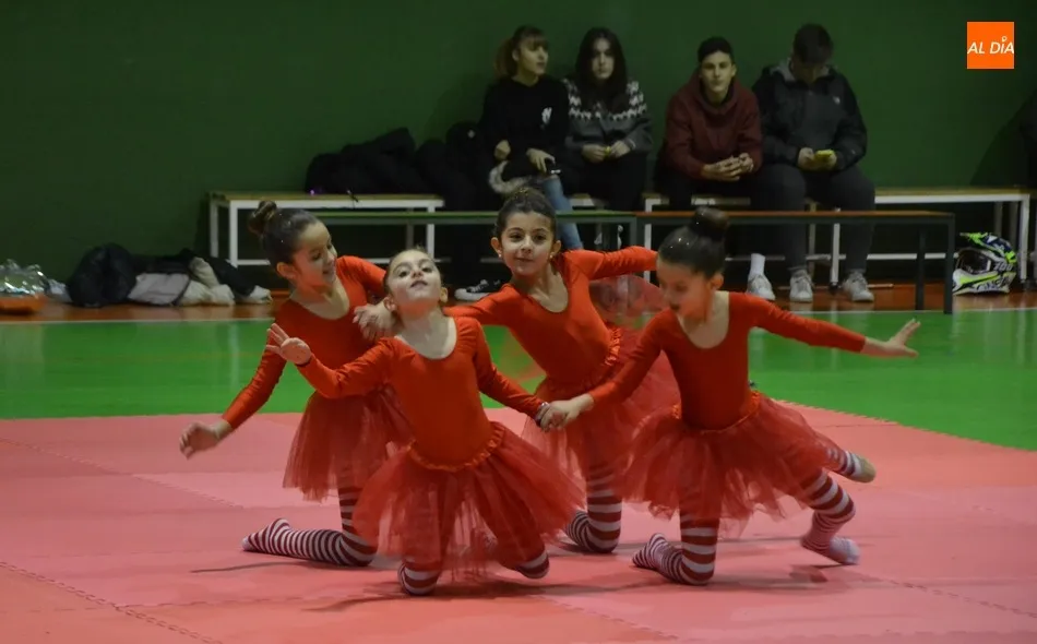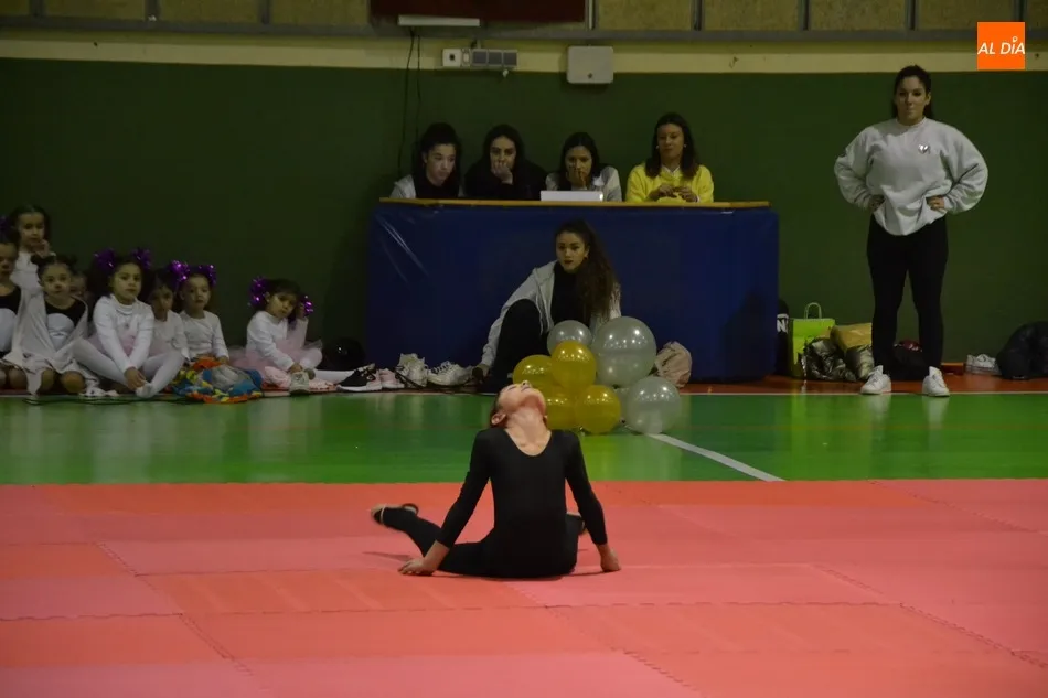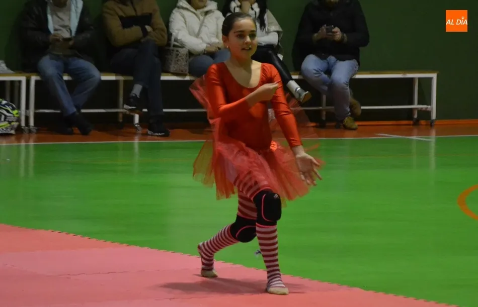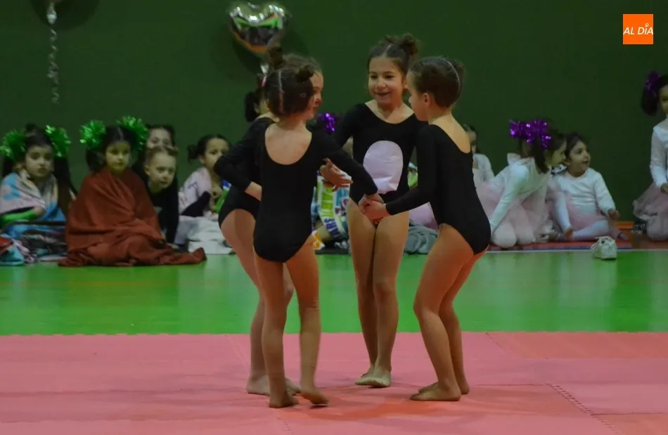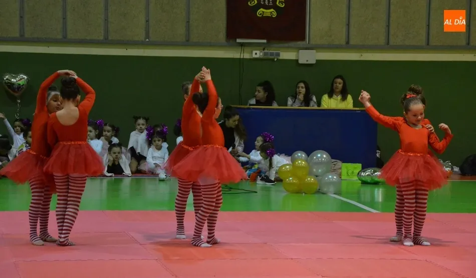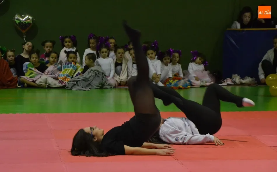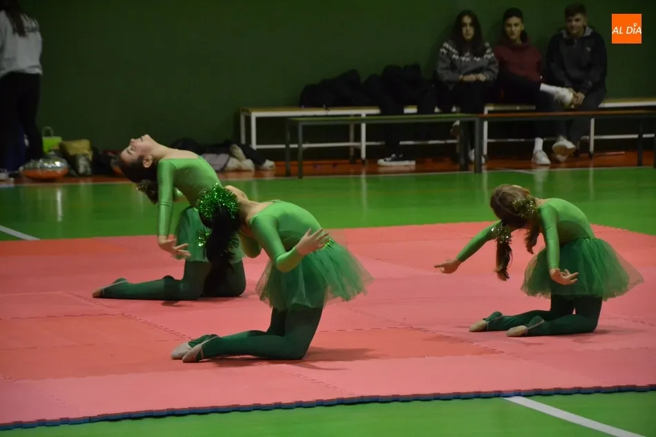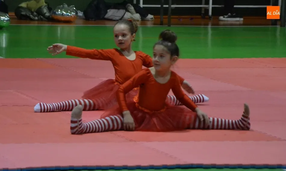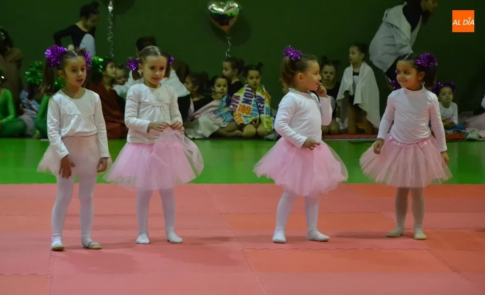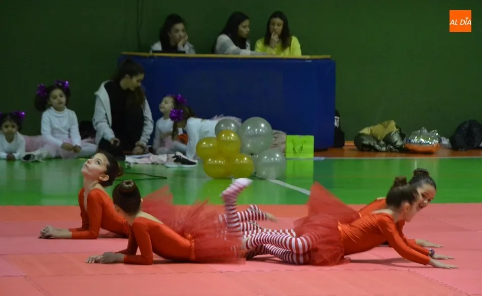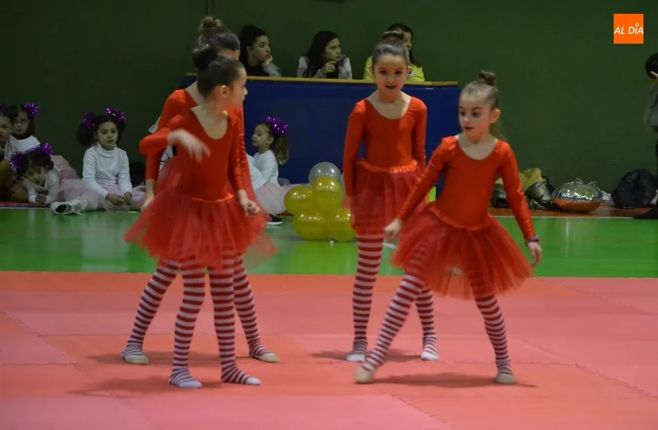 De sus 106 integrantes, en la exhibición participaron unos 96 (todos ellos chicas menos un niño), que dieron lo mejor de sí mismos, ataviados de forma apropiada para la ocasión, incluido con toques navideños (en concreto, partes de tiras de espumillón enrolladas en los moños). Junto a los alumnos de la Escuela, la exhibición contó con la intervención sobre el tapiz de sus responsables, Alicia Cid y Lucía de Elías, y otras veteranas de la gimnasia rítmica en Ciudad Rodrigo.