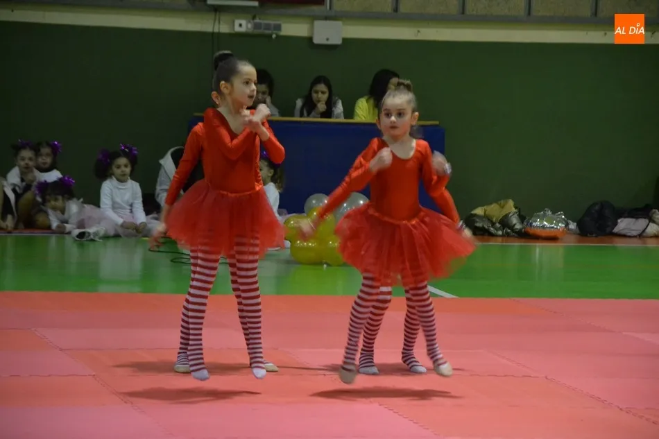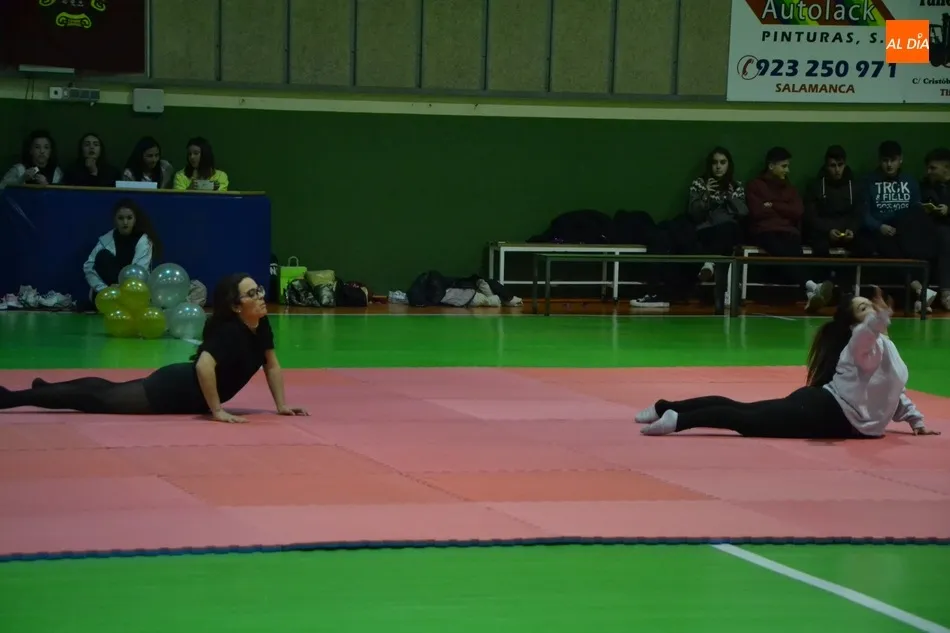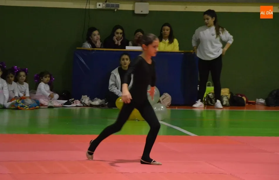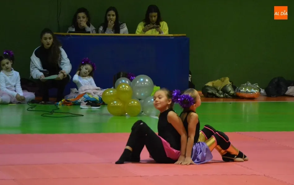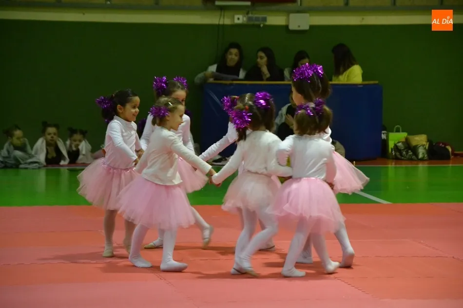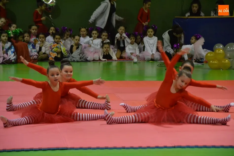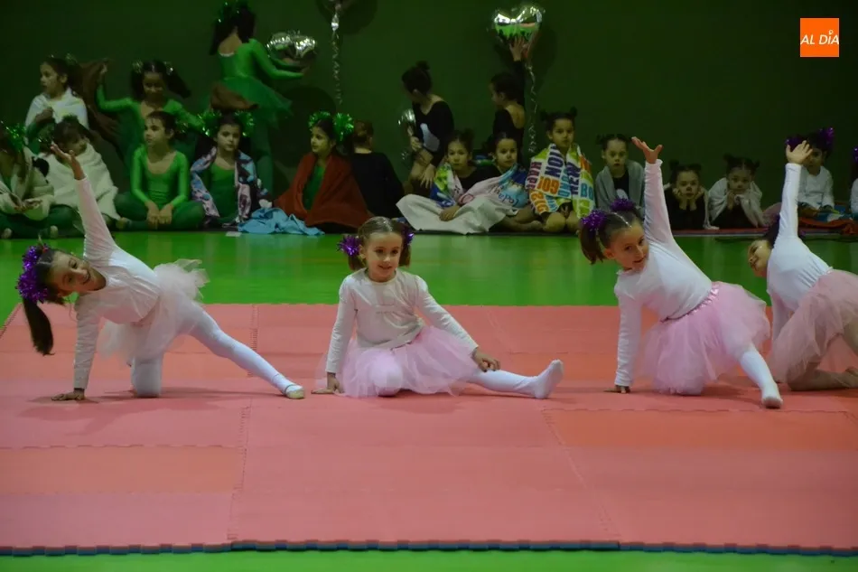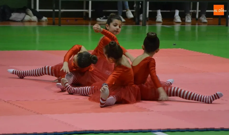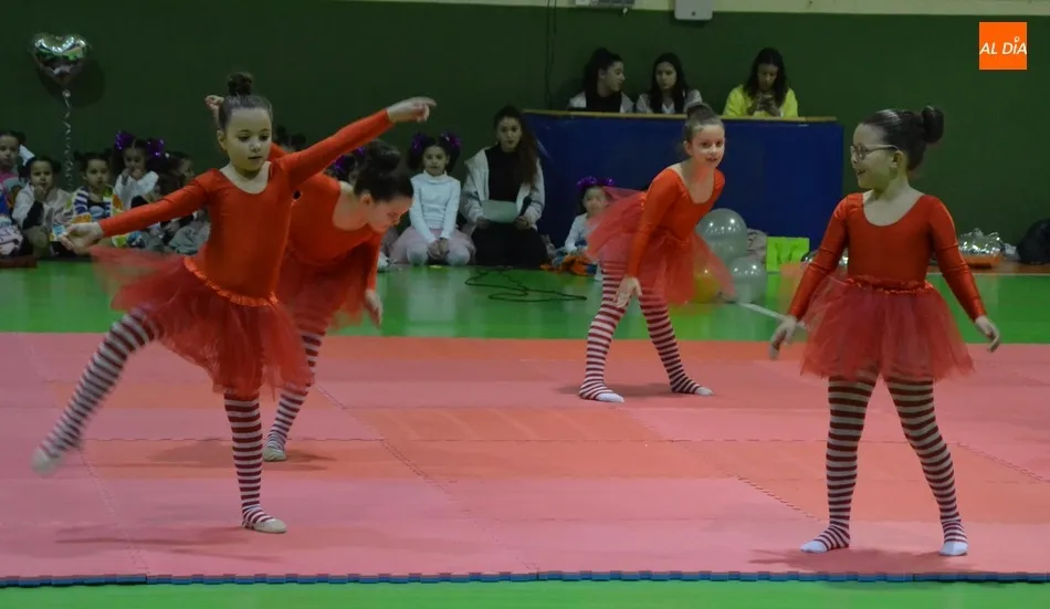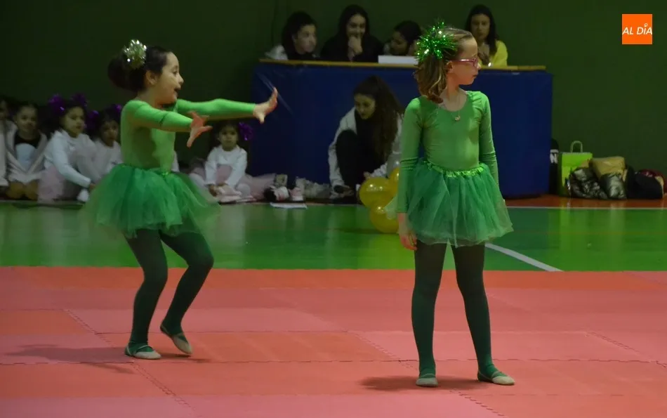 De sus 106 integrantes, en la exhibición participaron unos 96 (todos ellos chicas menos un niño), que dieron lo mejor de sí mismos, ataviados de forma apropiada para la ocasión, incluido con toques navideños (en concreto, partes de tiras de espumillón enrolladas en los moños). Junto a los alumnos de la Escuela, la exhibición contó con la intervención sobre el tapiz de sus responsables, Alicia Cid y Lucía de Elías, y otras veteranas de la gimnasia rítmica en Ciudad Rodrigo.