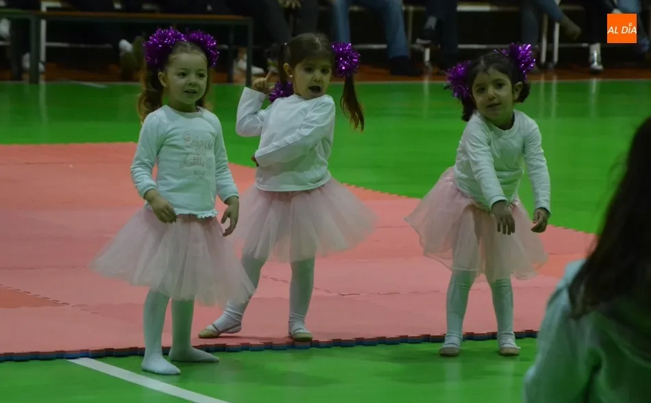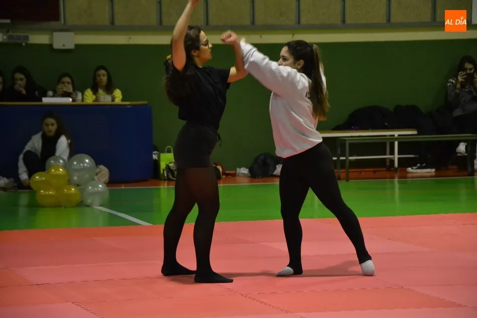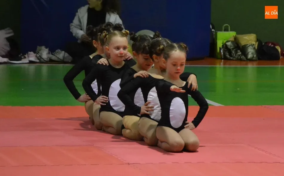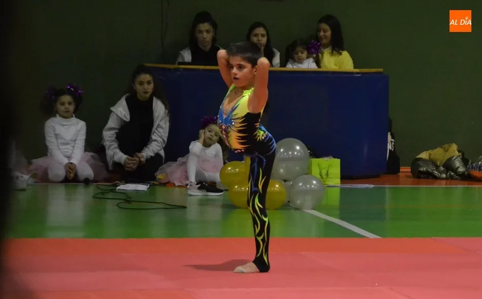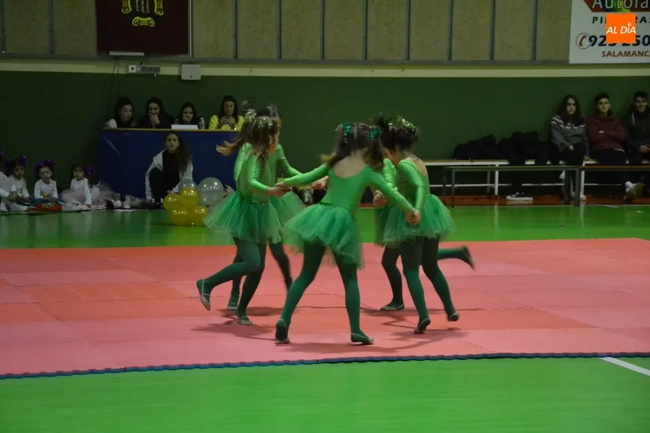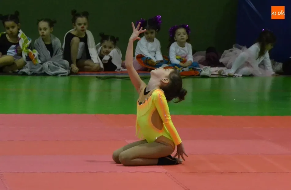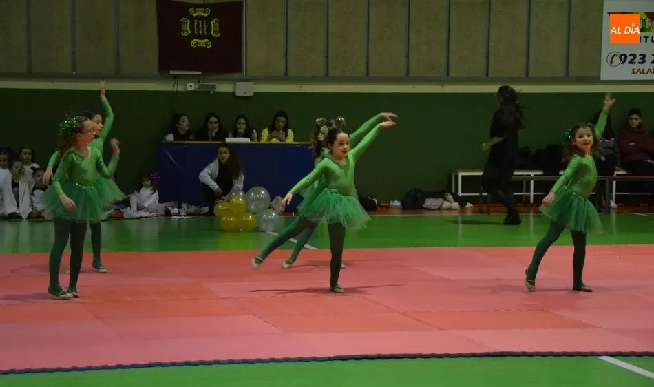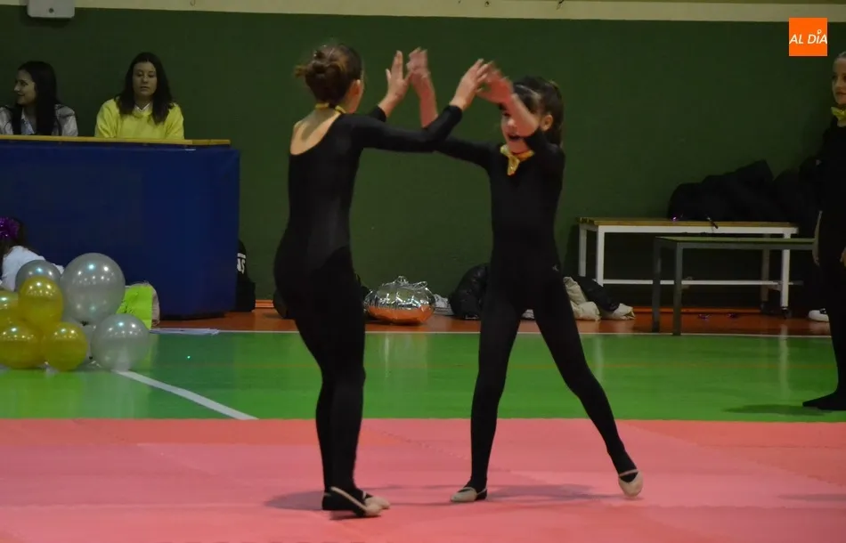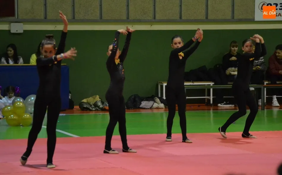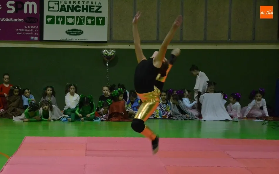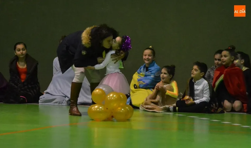 De sus 106 integrantes, en la exhibición participaron unos 96 (todos ellos chicas menos un niño), que dieron lo mejor de sí mismos, ataviados de forma apropiada para la ocasión, incluido con toques navideños (en concreto, partes de tiras de espumillón enrolladas en los moños). Junto a los alumnos de la Escuela, la exhibición contó con la intervención sobre el tapiz de sus responsables, Alicia Cid y Lucía de Elías, y otras veteranas de la gimnasia rítmica en Ciudad Rodrigo.