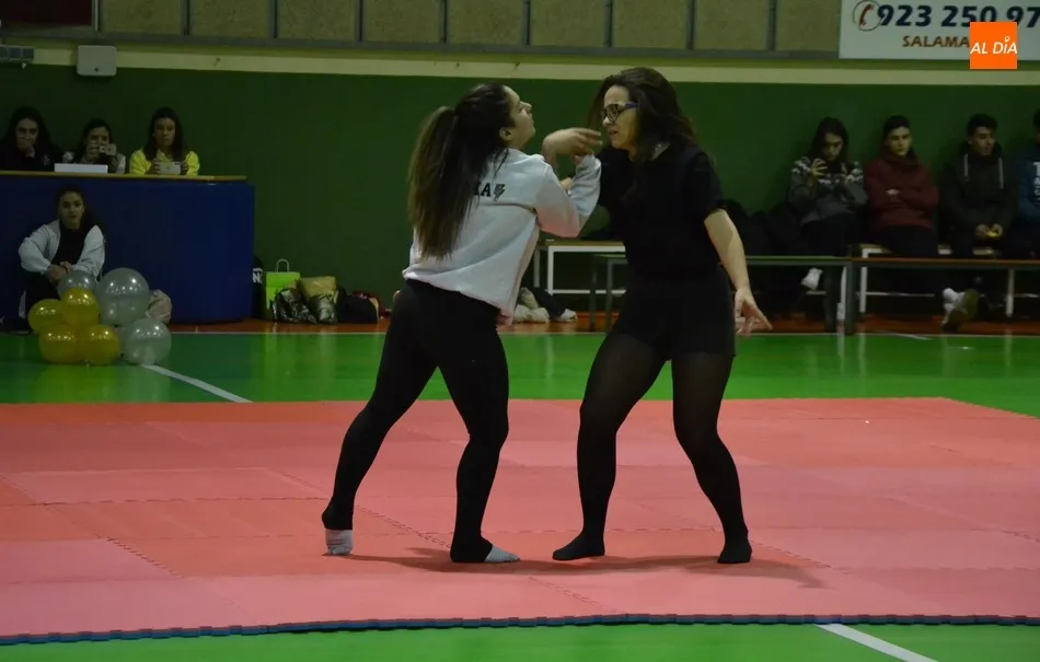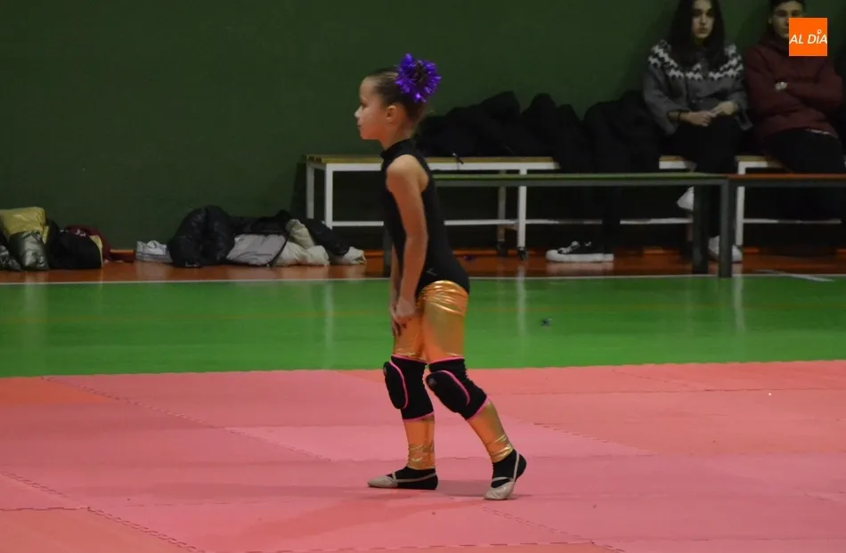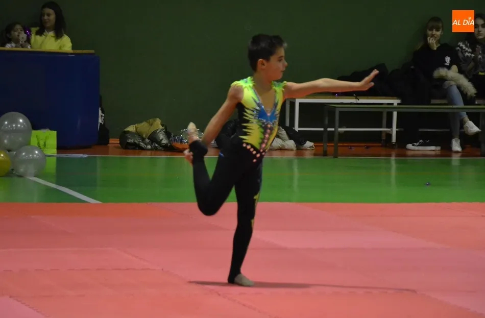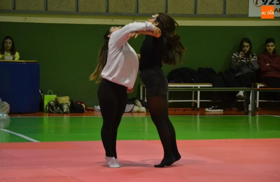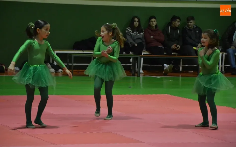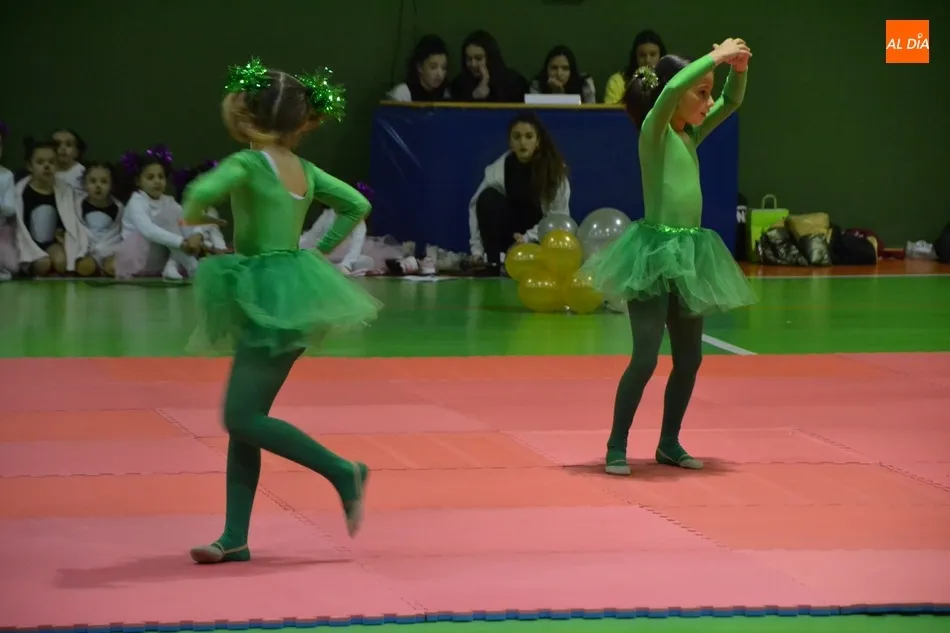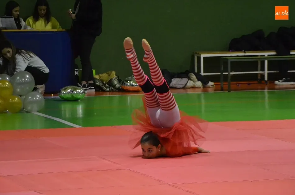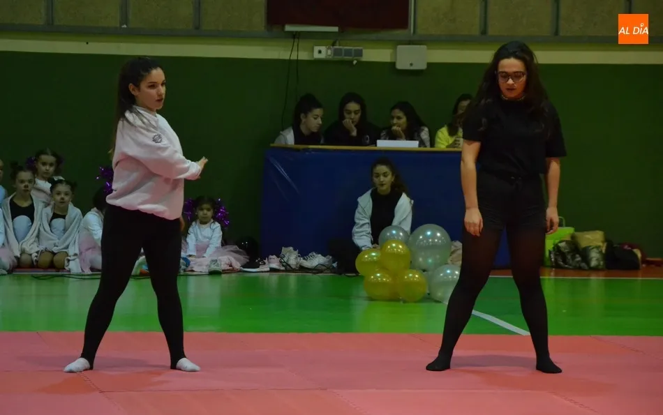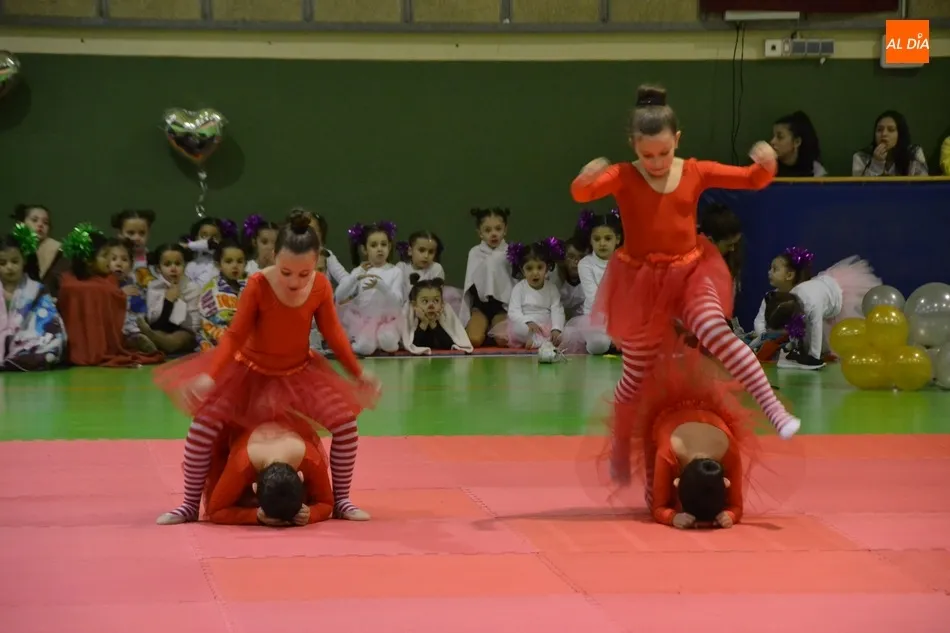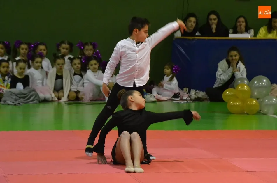 De sus 106 integrantes, en la exhibición participaron unos 96 (todos ellos chicas menos un niño), que dieron lo mejor de sí mismos, ataviados de forma apropiada para la ocasión, incluido con toques navideños (en concreto, partes de tiras de espumillón enrolladas en los moños). Junto a los alumnos de la Escuela, la exhibición contó con la intervención sobre el tapiz de sus responsables, Alicia Cid y Lucía de Elías, y otras veteranas de la gimnasia rítmica en Ciudad Rodrigo.