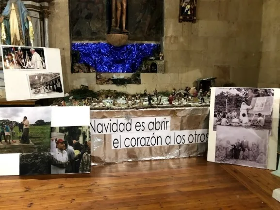 Quintín García, de la comunidad de dominicos de Babilafuente, explica la idea: ?Aprovechando que Roberto este verano y Miguel Ángel en fechas recientes ?dominicos que en su día estuvieron años en la comunidad de dominicos de Babilafuente-, han pasado por nuestros pueblos, hemos querido enriquecer los belenes tradicionales que se montan en nuestras iglesias en estas fechas con fotografías agrandadas de diversos momentos y rostros de las etnias originarias de la Amazonia del Perú, donde Roberto ejerce de misionero y nos trae, siempre que viene, colecciones de fotografías y de historias sobre el momento actual y los problemas económicos y culturales que acucian a estos hombres y mujeres. Las fotografías de Miguel Ángel hacen alusión a las actuales luchas de un grupo grande de campesinos de El Seybo ?República Dominicana- en defensa de sus Derechos Humanos y de sus tierras. Luchas que estamos siguiendo paso a paso un grupo grande de personas de estos pueblos desde hace unos meses?.
