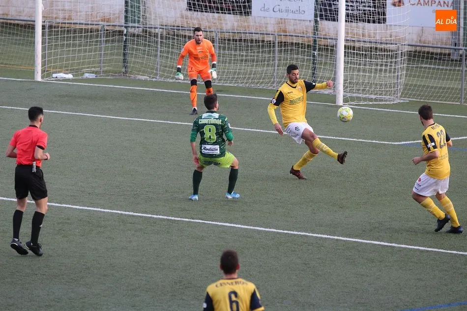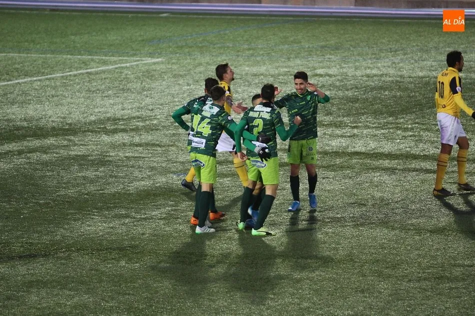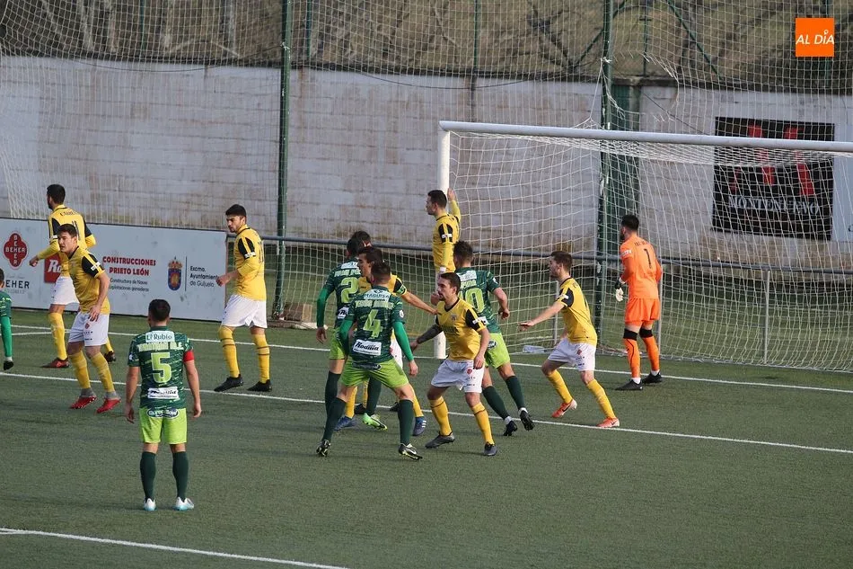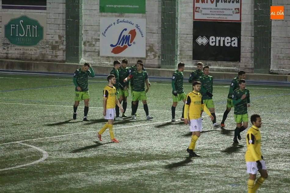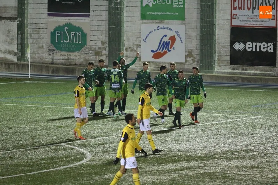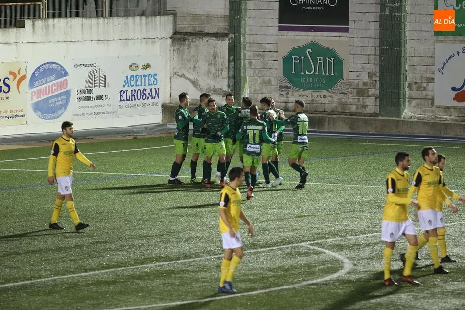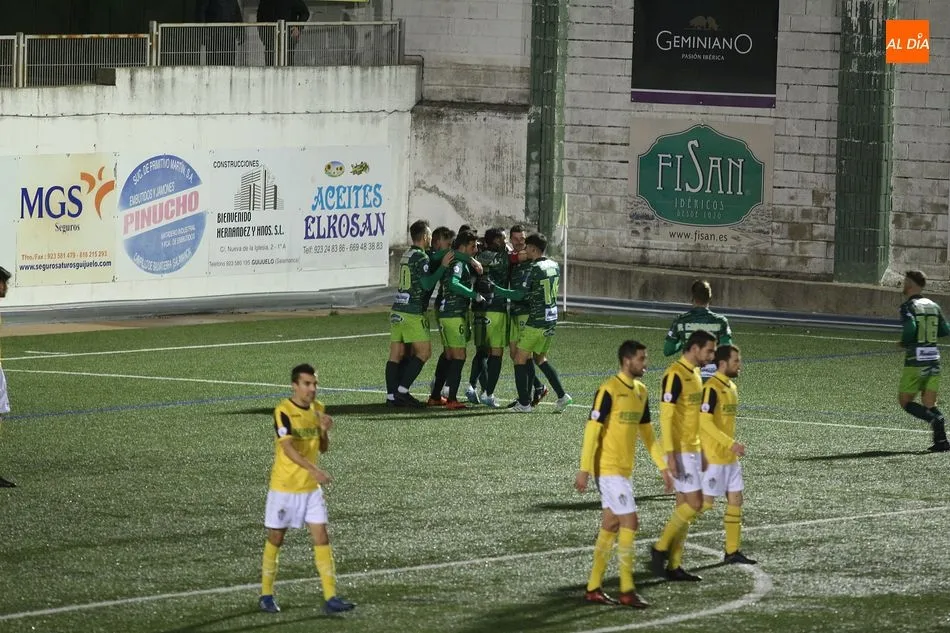 Tras el descanso, el Guijuelo saltó al terreno de juego más convencido y obtuvo el primer tanto en el 53. Falta a favor de los verdiblancos que Jesús Muñoz remató de cabeza tras un gran salto. Buen gol para empezar el año.