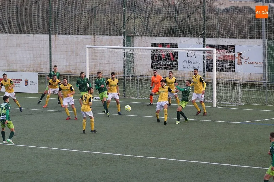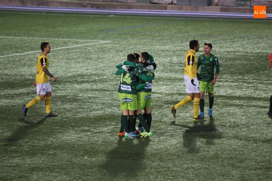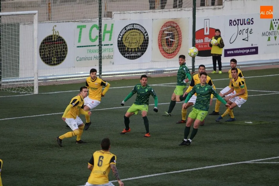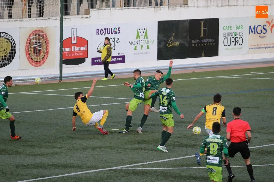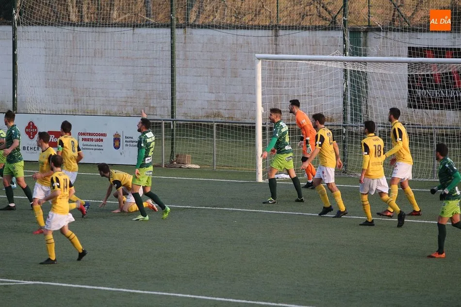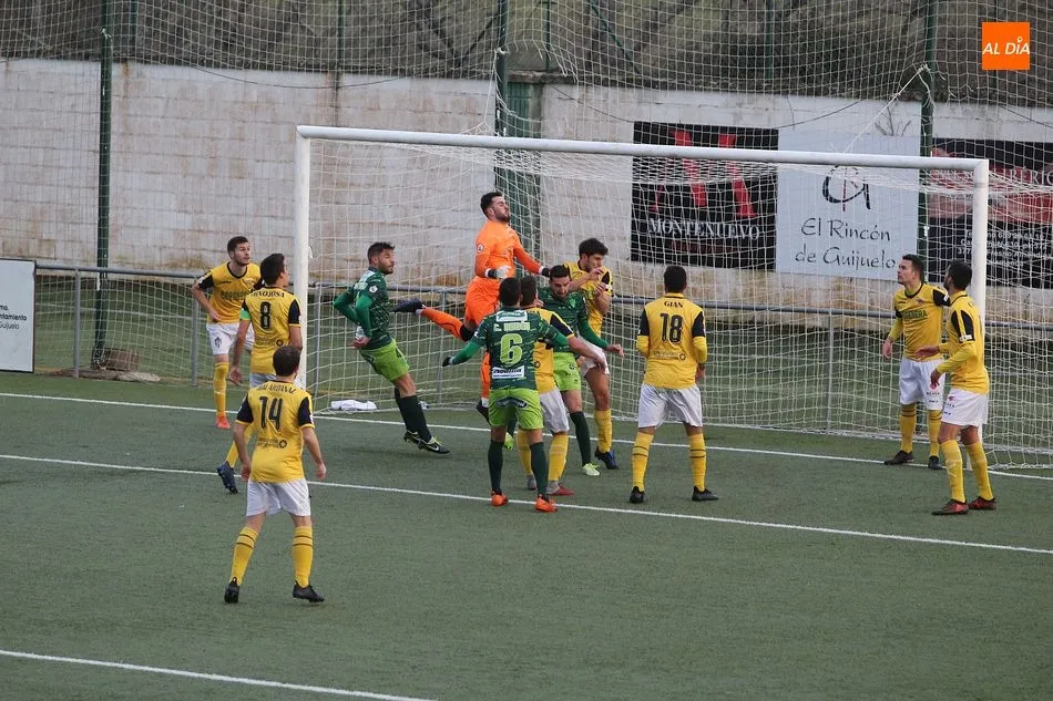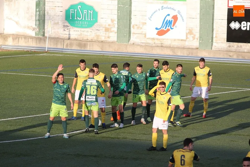 Tras el descanso, el Guijuelo saltó al terreno de juego más convencido y obtuvo el primer tanto en el 53. Falta a favor de los verdiblancos que Jesús Muñoz remató de cabeza tras un gran salto. Buen gol para empezar el año.