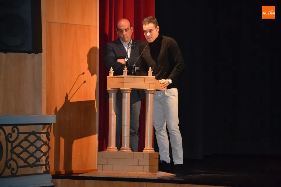 El acto contó con la presencia de varios de los protagonistas de los eventos de las sobremesas en la Plaza Mayor: Juan Antonio Pérez Pinto, Valentín Hoyos, Manuel Diosleguarde y Antonio Grande, que subieron en el tramo final del acto al escenario, en el que se proyectó el cartel promocional de esos eventos, que tiene en su parte superior una fotografía de un paseíllo en el coso taurino mirobrigense.