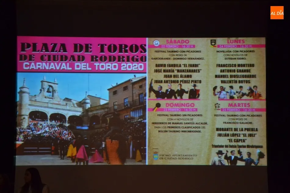 A diferencia por ejemplo del año anterior, este año ya se sabía de antemano qué ganadería protagonizaría cada uno de los días del Carnaval, por lo que la incógnita era conocer la imagen de los astados, que fue desvelada en el clásico vídeo de presentación, al que antecedió otro vídeo de cerca de 10 minutos sobre las tradiciones de Ciudad Rodrigo, cuyos compases finales estuvieron dedicados al Carnaval; y otro de presentación de los novillos del Concurso de Recortes que habrá en la noche del Sábado de Carnaval, que todavía no tiene ubicación.