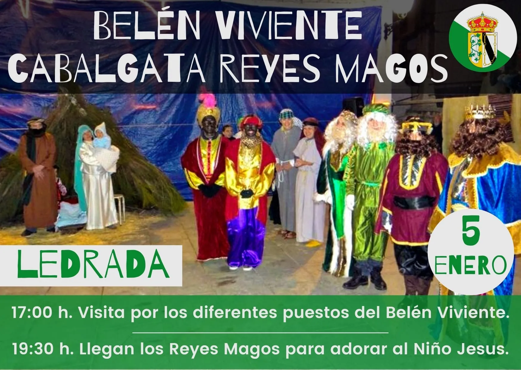 En esta localidad han optado por un belén viviente y cabalgata de Reyes en la misma jornada. A las 17:00 horas se hará una visita por los distintos puestos del belén viviente, mientras que a las 19:30 horas llegarán los Reyes Magos a adorar al niño Jesús.