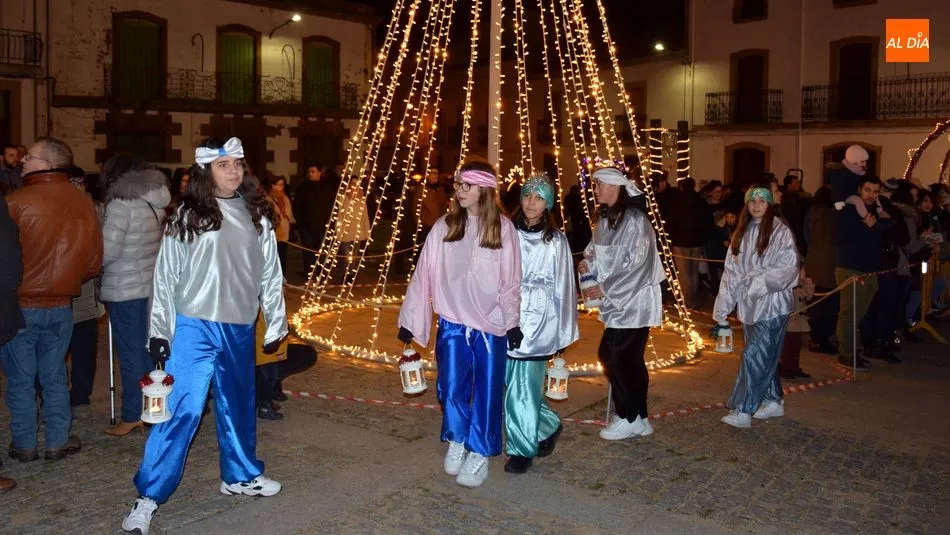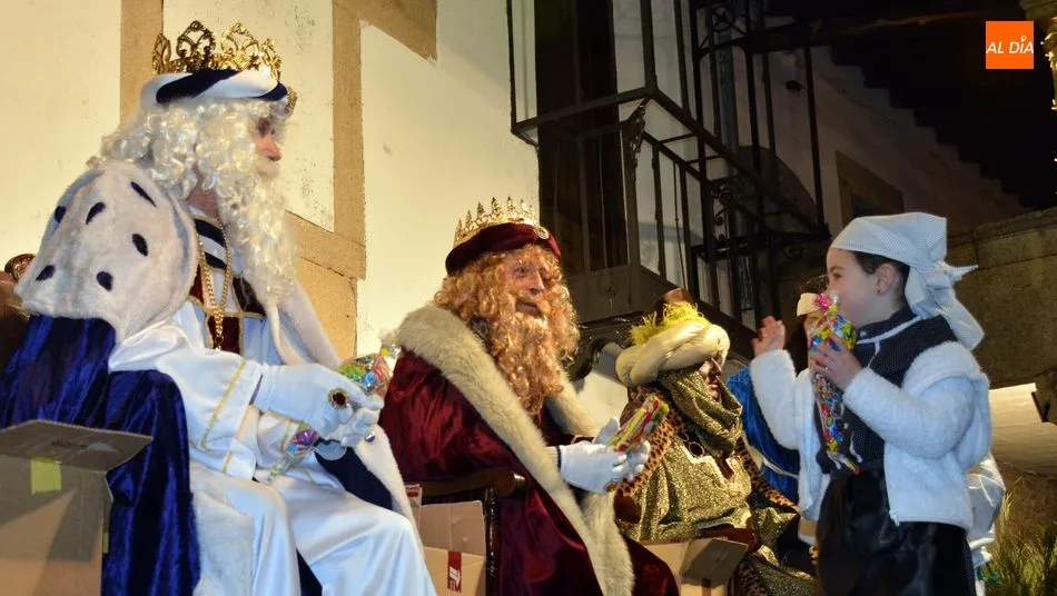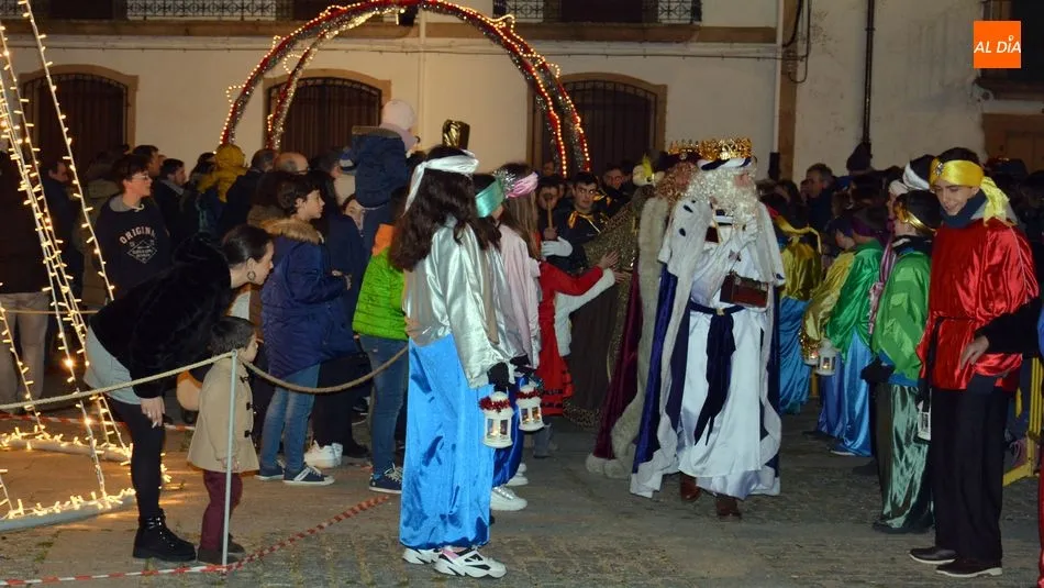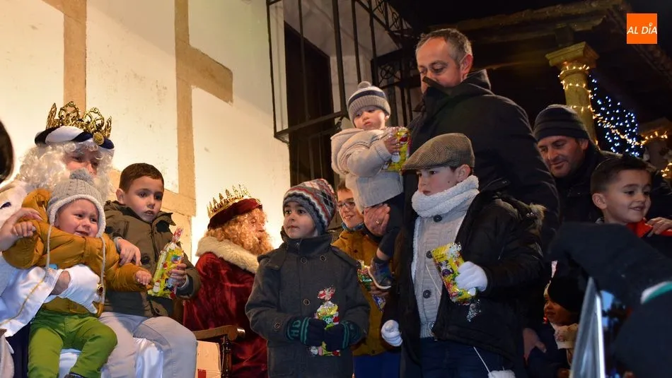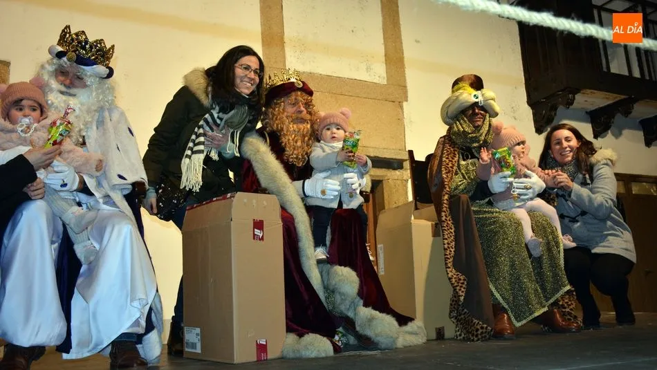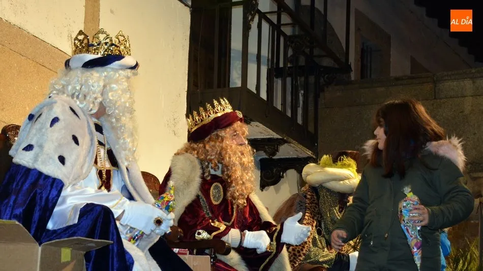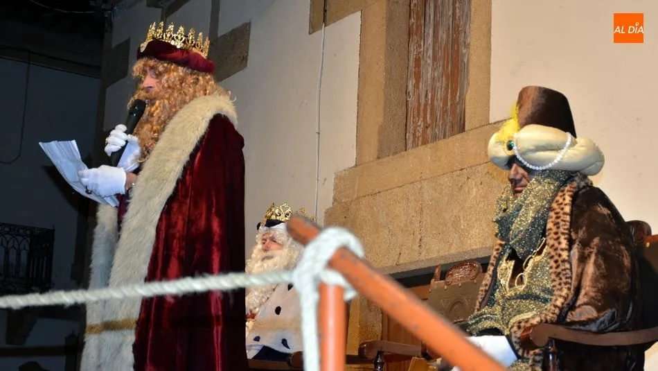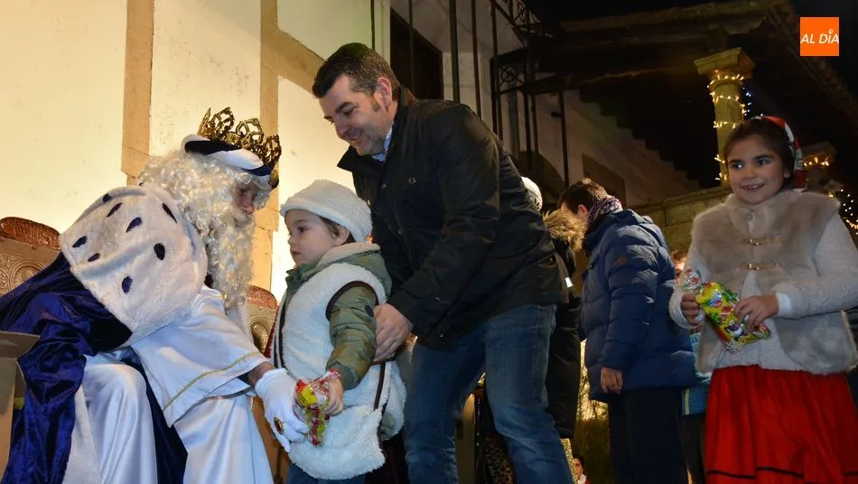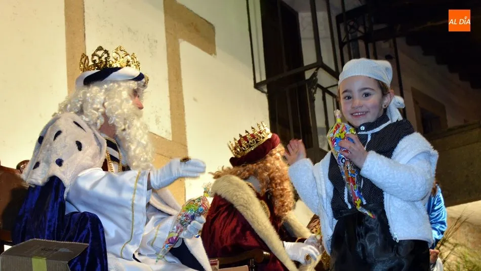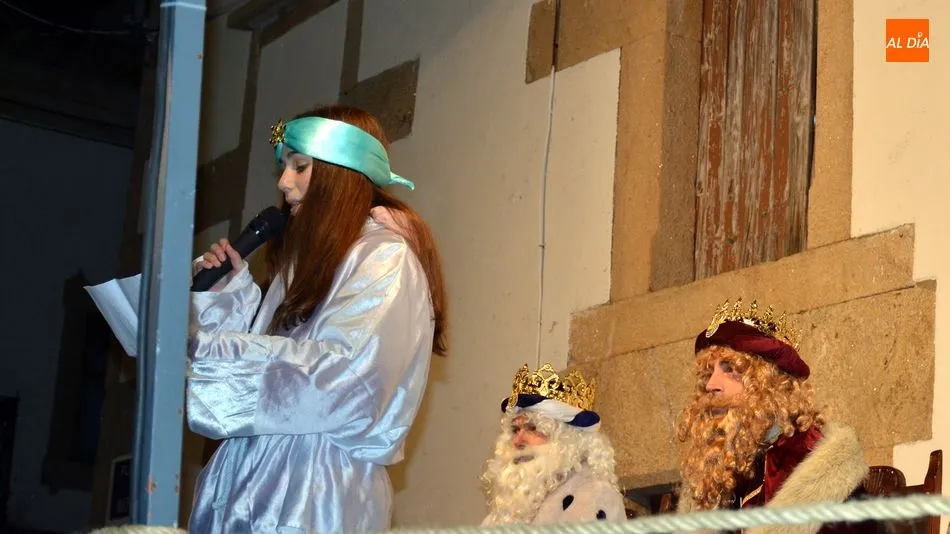 Tras la visita al Niño Jesús, y una vez ocuparon los tronos instalados en un escenario, los Reyes recibieron la bienvenida a Lumbrales por parte de Andrea, en nombre de todos los niños de la localidad. Por su parte, el rey Gaspar, en nombre de su compañeros, saludó a todos los presentes y mostró la satisfacciónde estar un año más en la capital del Abadengo, despertando la misma ilusión y emoción de siempre entre los más pequeños.