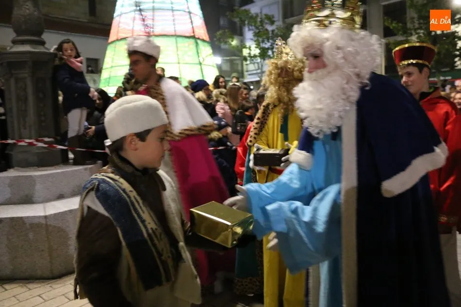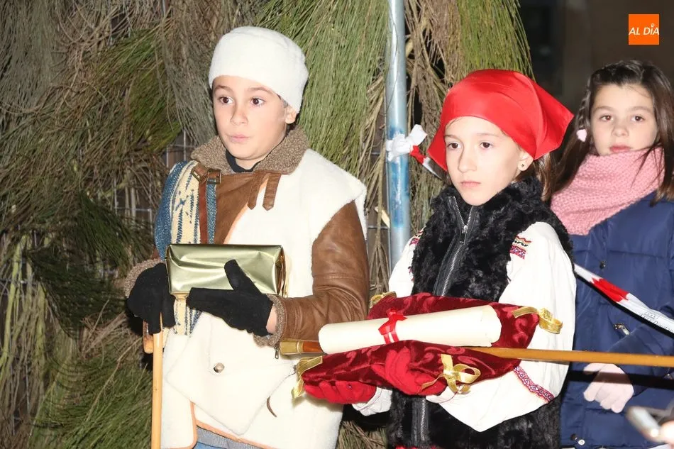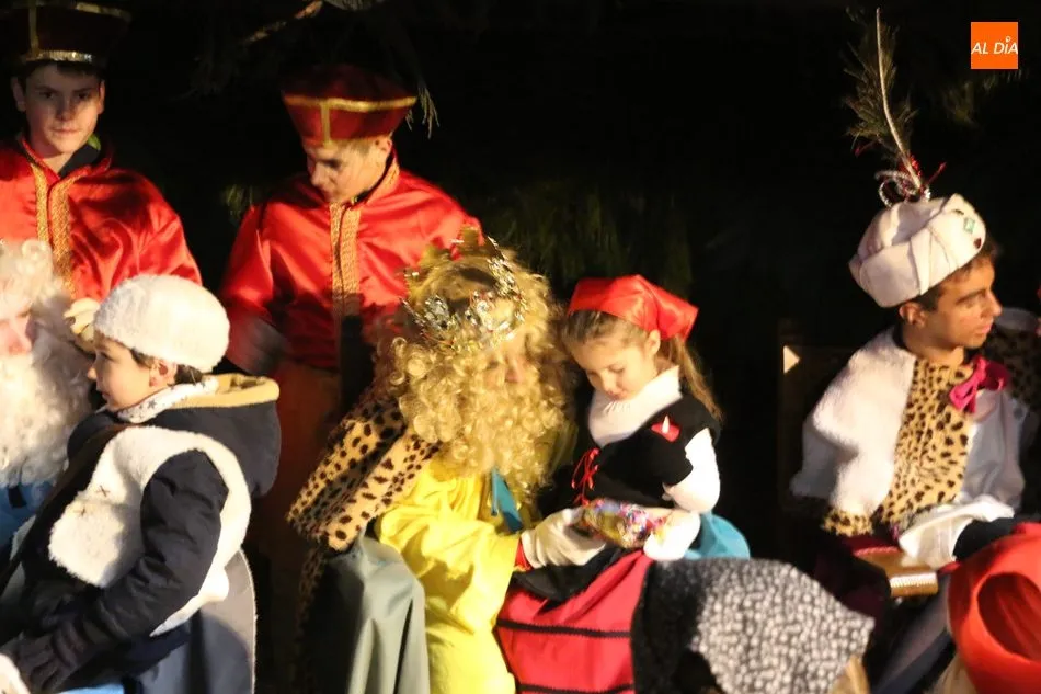 Tras recibir las llaves, Melchor agradeció el gesto y leyó un pergamino en el que pidió al mundo paz y solidaridad con los millones de niños que mueren de hambre cada año, momento al que seguiría la entrega al Niño Jesús de los tradicionales presentes, oro, incienso y mirra, que con María y José aguardaban en un pequeño portal adorado por una veintena de pastorcillos y pastorcillas.