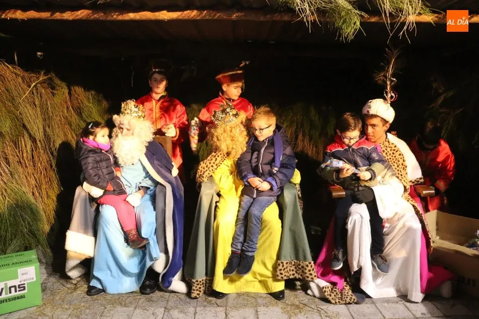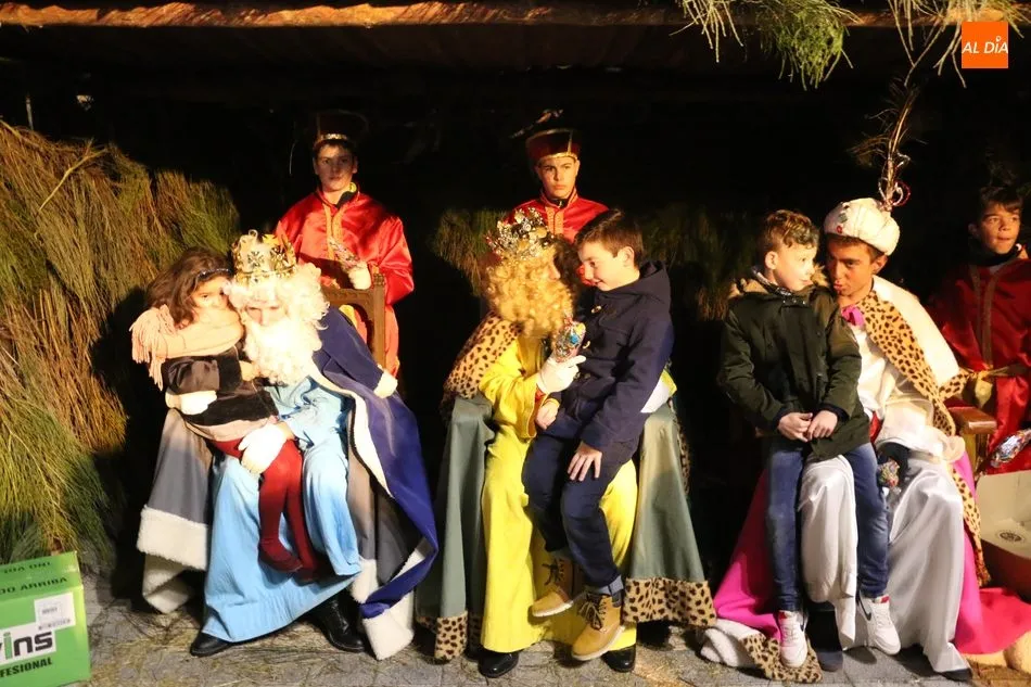 De este modo se daba por concluida la presentación de SSMM los Reyes Magos en la Plaza de España, momento al que seguiría la recepción de todos los niños de Vitigudino en un pequeño portal instalado en la Plaza. Uno a uno, los pequeños fueron pasando sobre las rodillas de SSMM, y a cambio de conocer sus peticiones para esta noche, los Reyes Magos les hacían entrega de una bolsa de caramelos.