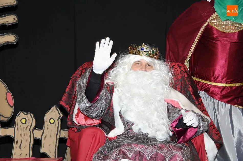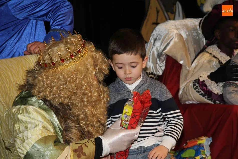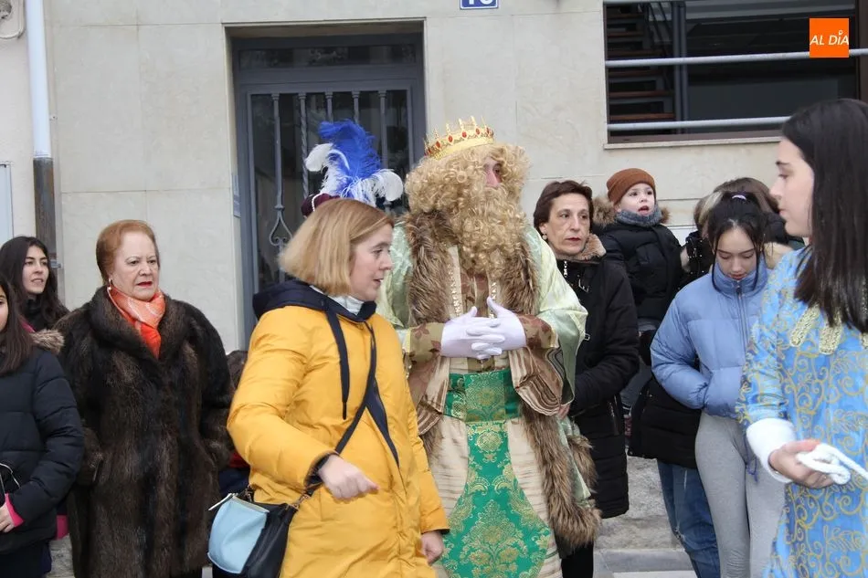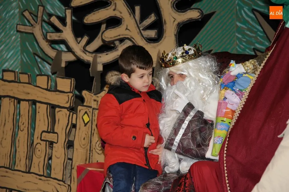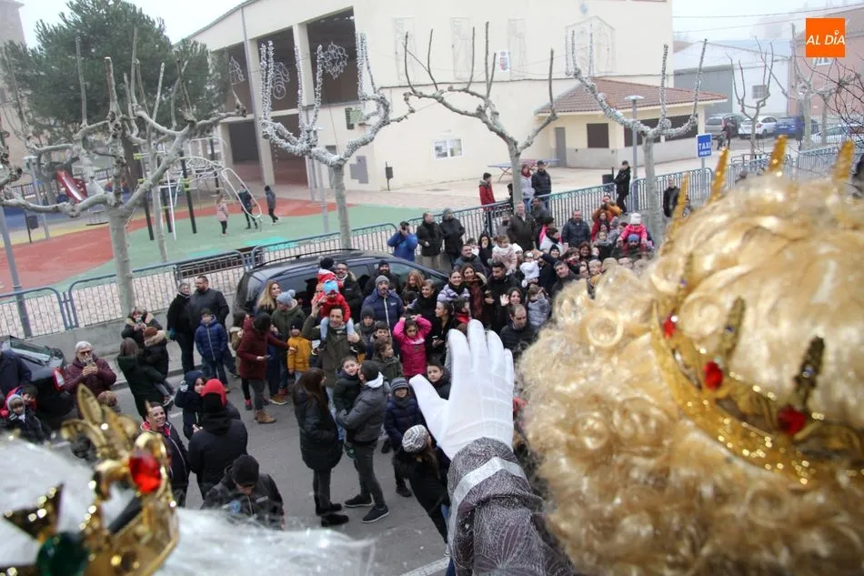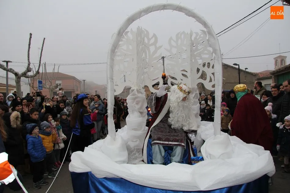 Melchor, Gaspar y Baltasar lanzaron miles de caramelos a las familias de la localidad charra que acudieron a la cita con Sus Majestades de Oriente
