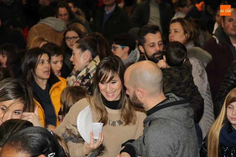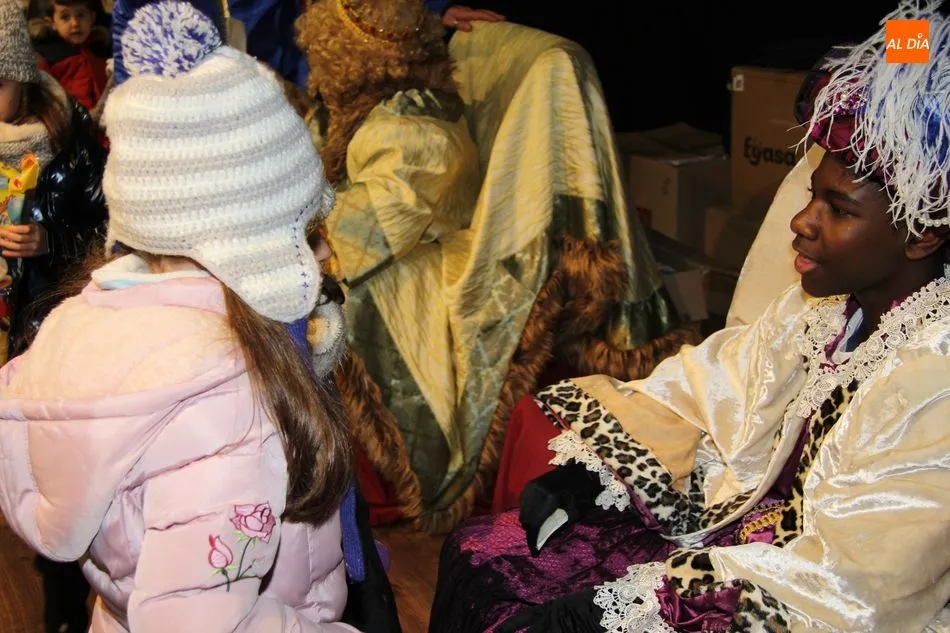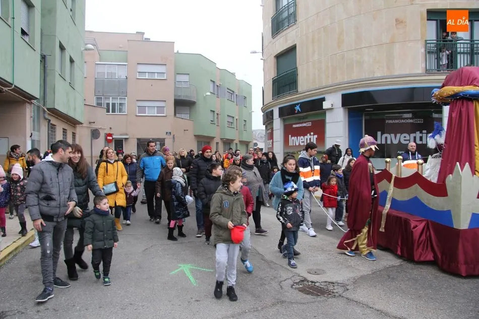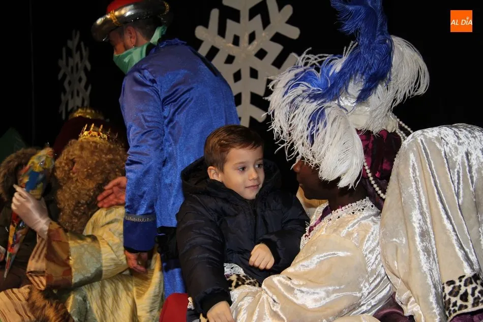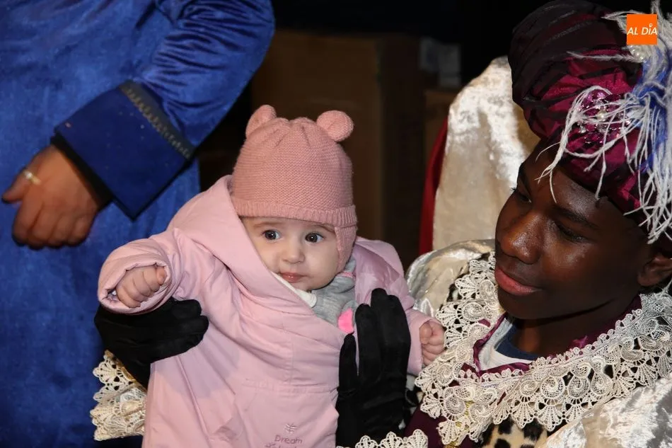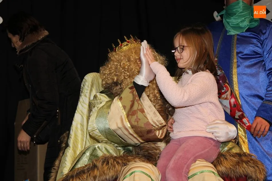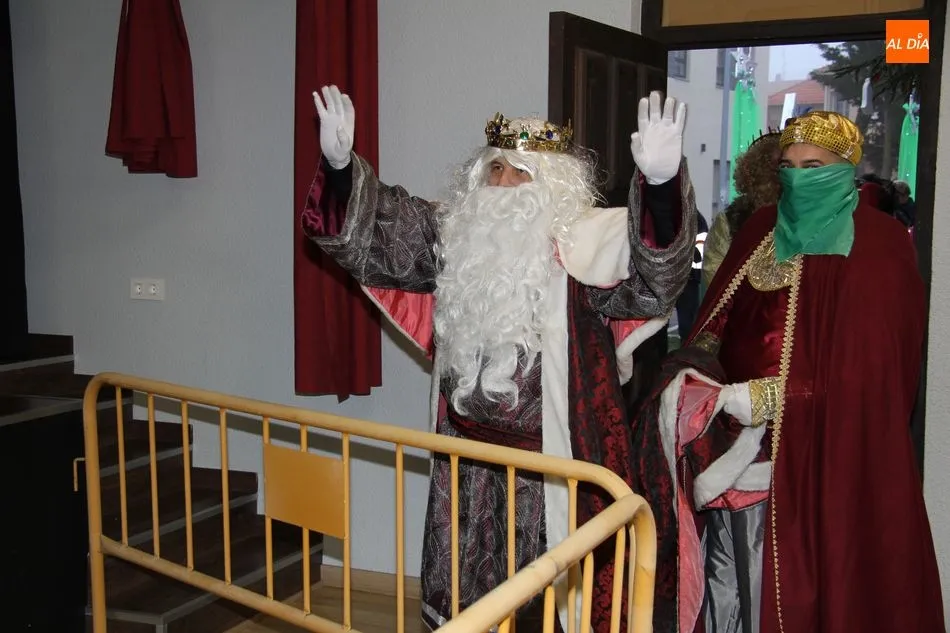 Melchor, Gaspar y Baltasar lanzaron miles de caramelos a las familias de la localidad charra que acudieron a la cita con Sus Majestades de Oriente