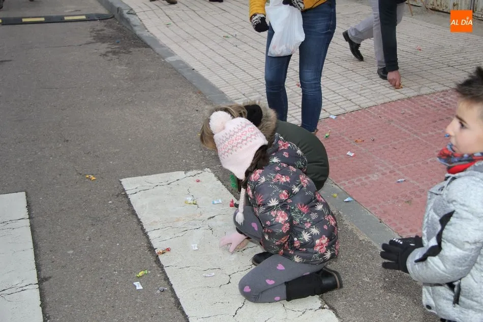 Los Reyes Magos repartieron felicidad en Castellanos de Moriscos. Melchor, Gaspar y Baltasar lanzaron miles de caramelos a las familias de la localidad charra que acudieron a la cita con Sus Majestades de Oriente.