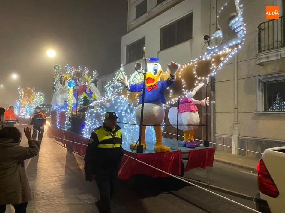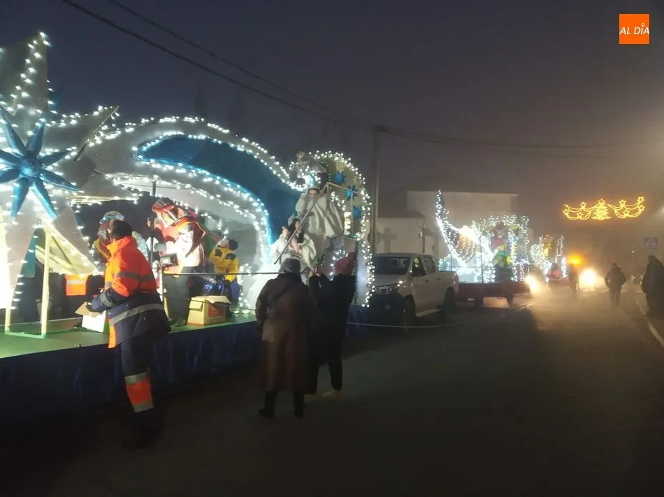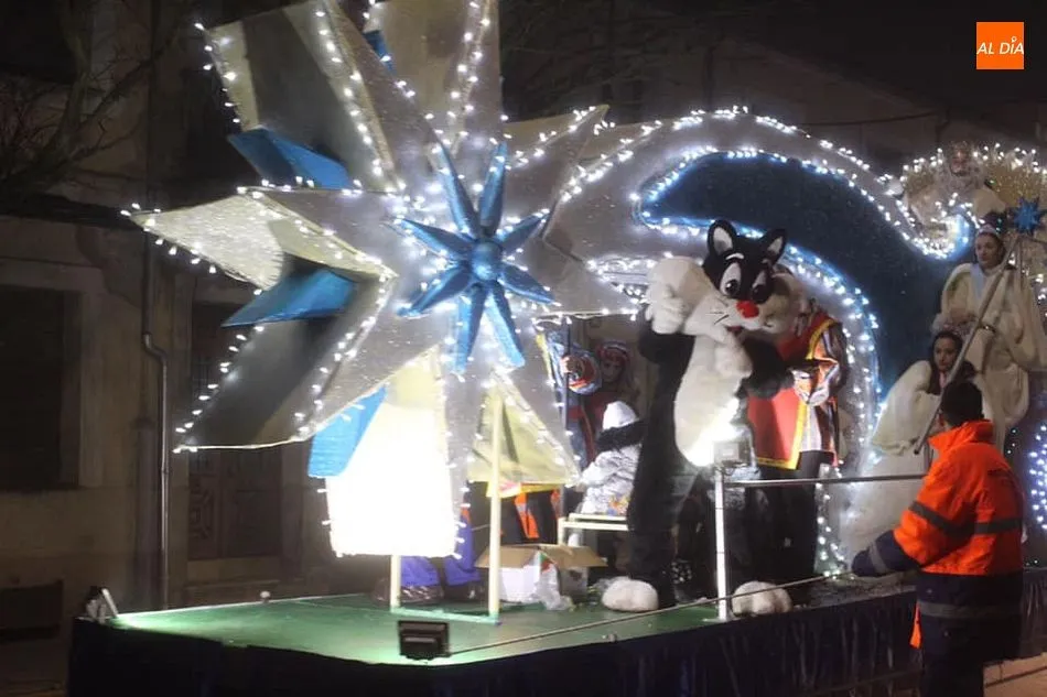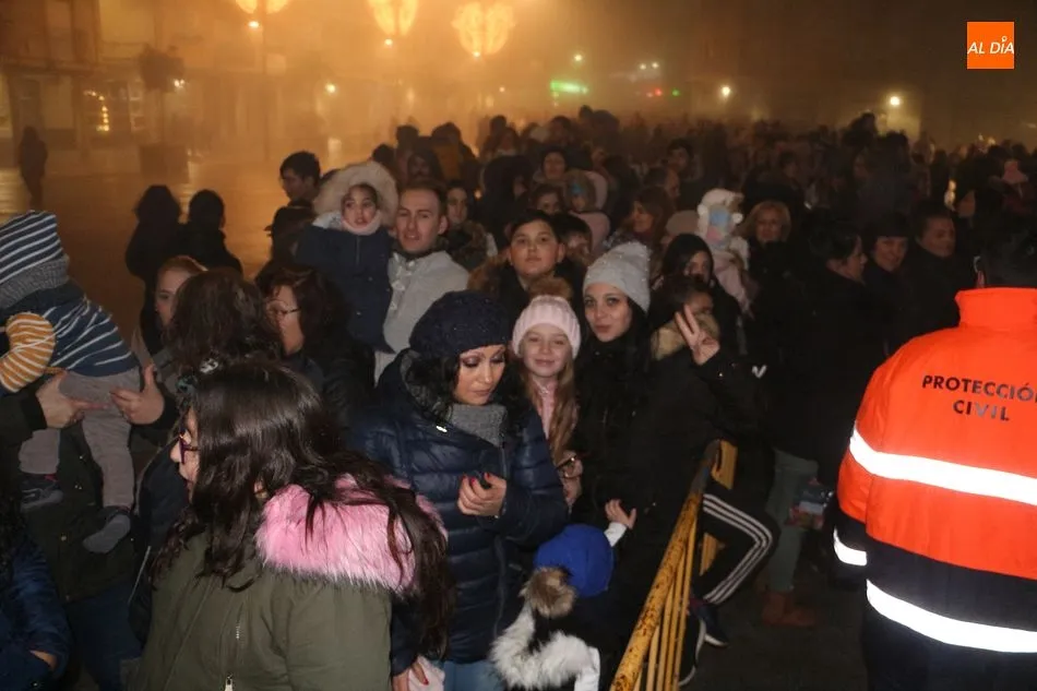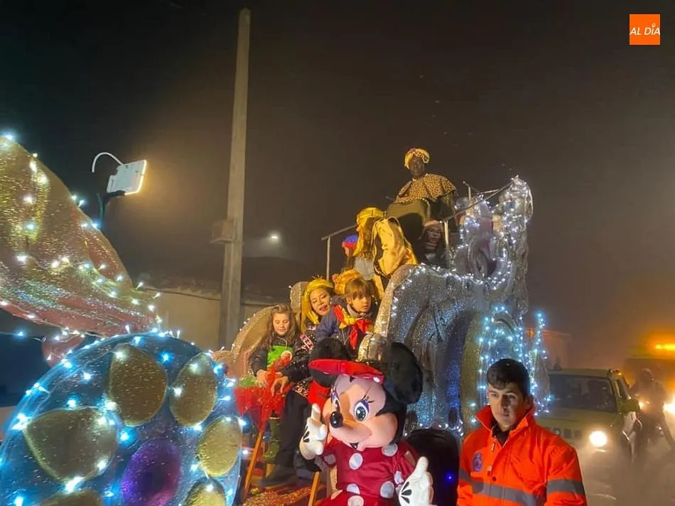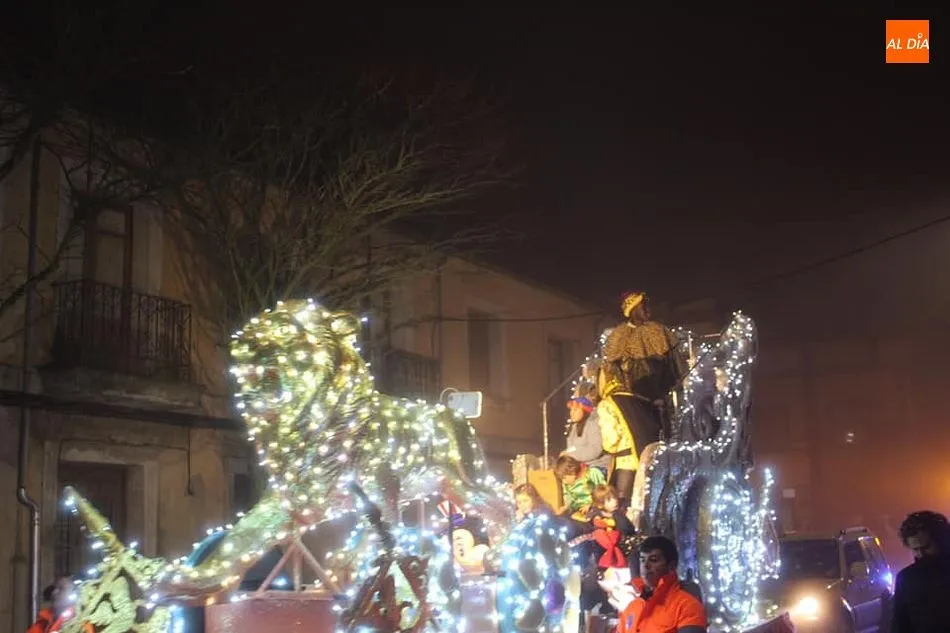 De regreso a Guijuelo, ha comenzado la cabalgata en la carretera de Campillo y ha recorrido las principales calles de la villa antes de llegar a la Plaza Mayor. El recorrido, inmerso en una densa niebla, ha contado con las tradicionales carrozas, viajando en ellas los niños ganadores del concurso organizado por el Ayuntamiento. En el ágora, Sus Majestades han recibido a los niños y les han regalado caramelos y la promesa de una mágica visita esta noche repleta de regalos.