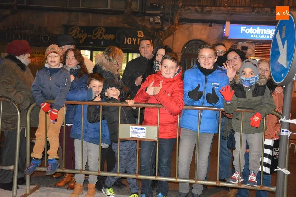 Salamanca se llenó de ilusión de padres y niños con la Cabalgata de Reyes. Sus Majestades de Oriente pasearon por las calles de la ciudad charra repartiendo felicidades y caramelos en pleno centro, motivo por el que miles de personas no quisieron perderse una cita que no pierde su esencia por mucho que pasen los años.