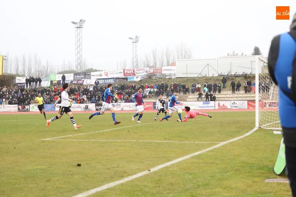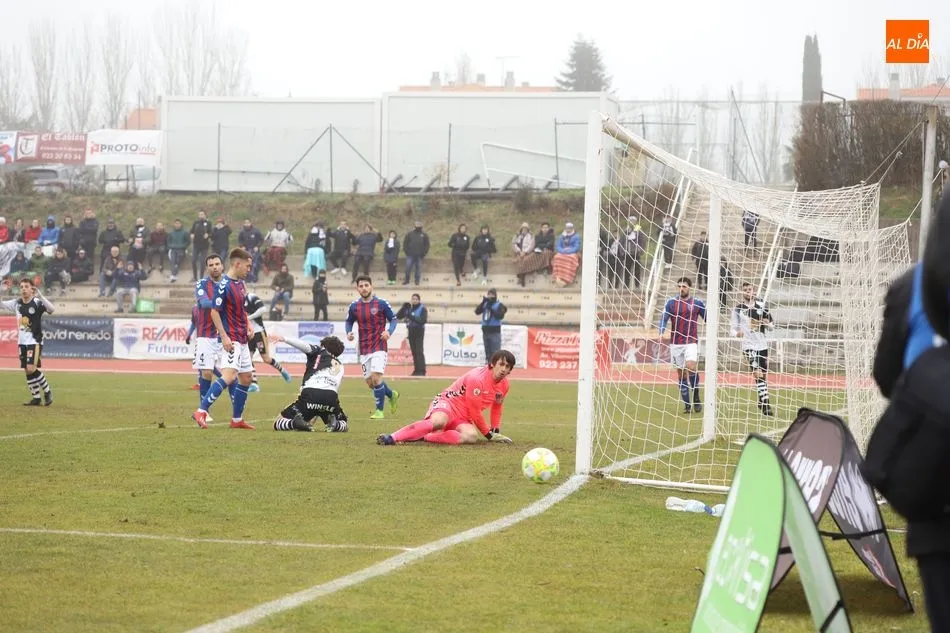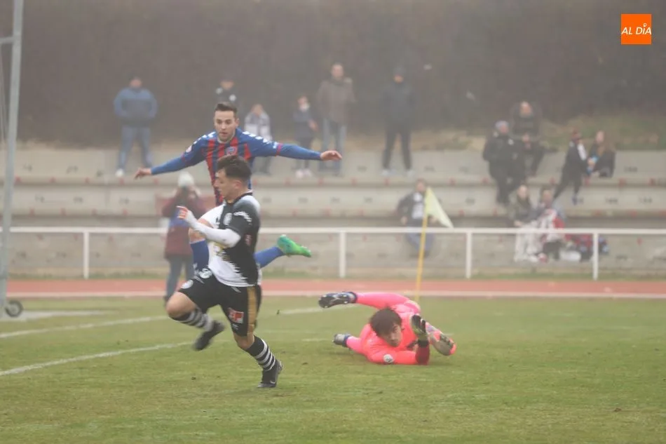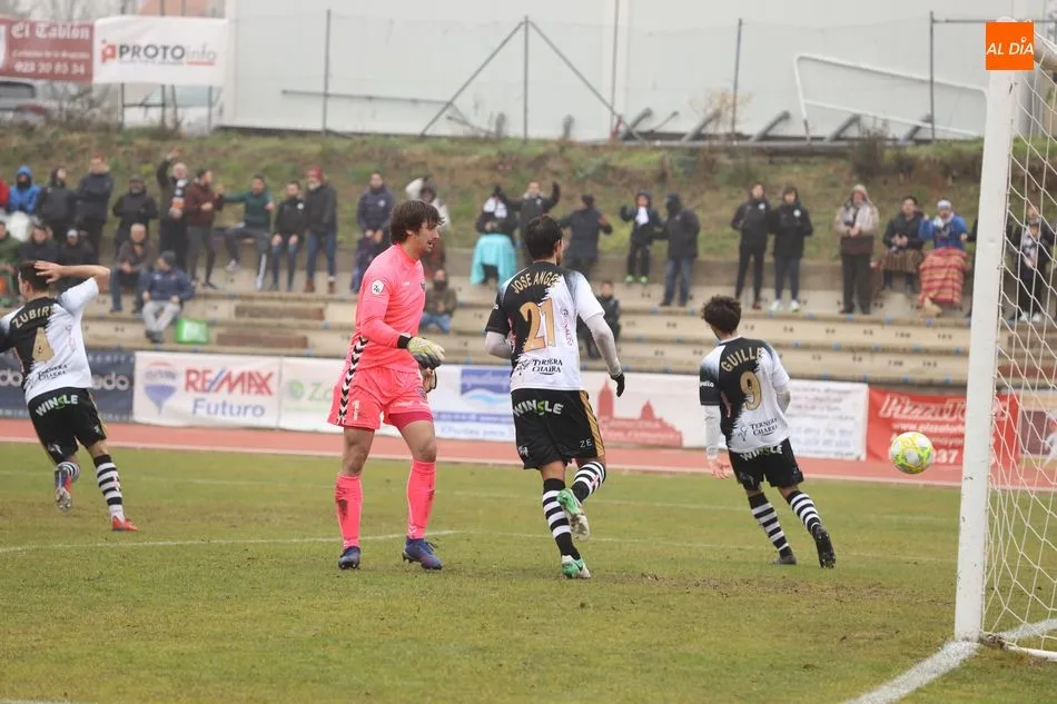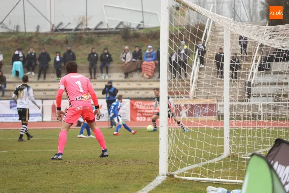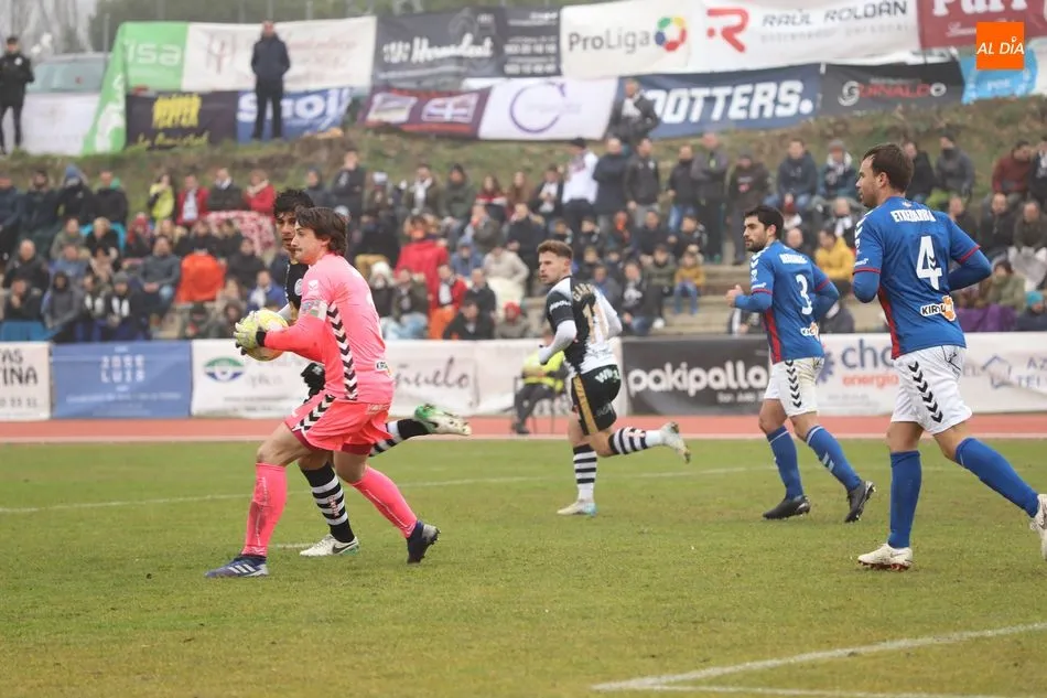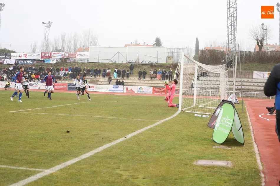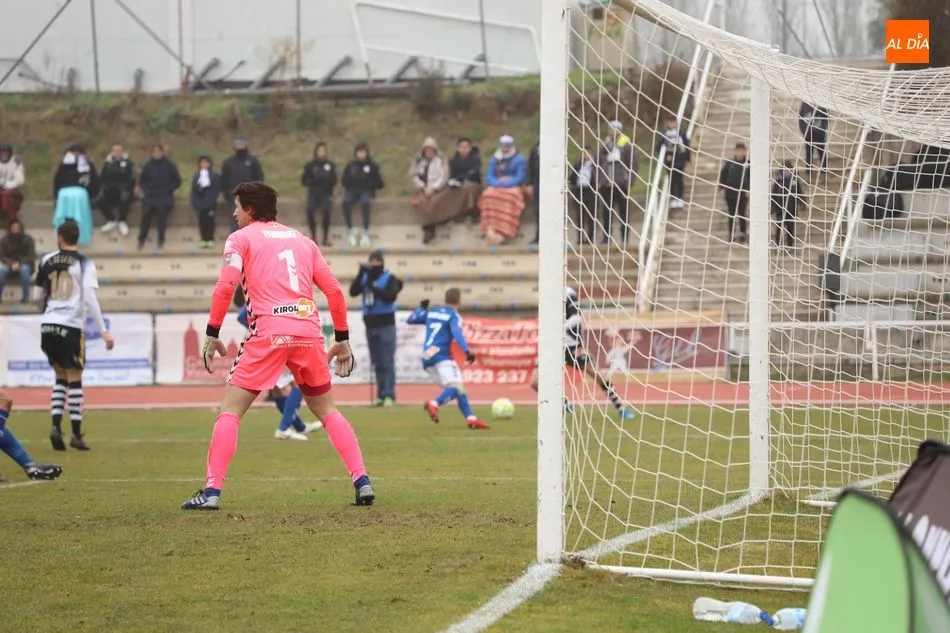 Romero también tuvo en sus botas otra de las claras ocasiones que tuvo Unionistas. El menudo jugador del equipo charro quebró a su defensor, pero su disparo fue de nuevo enviado a saque de esquina por el meta vasco.