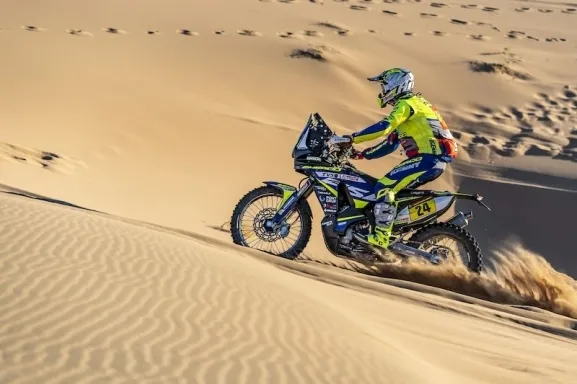 Lorenzo Santolino (Sherco) ha pasado este lunes, día de Reyes, la primera parte de la etapa supermaratón, que le llevará a recorrer casi 900 kilómetros sin asistencias en la que va a ser una nueva criba del Dakar. El salmantino ha pasado con nota la prueba ya que ha terminado en el puesto 17 la etapa, segundo mejor español, y sube cinco puestos en la general. La etapa, de 367 kilómetros de especial y solo 36 de enlace, era la primera parte de la supermaratón, que une la segunda y tercera etapas con unas reglas muy estrictas. Los pilotos solo tienen diez minutos para hacer reparaciones a sus motos al término de la segunda etapa de hoy, y no pueden recibir ayuda, y también se marcan los neumáticos ya que hay sanciones a quienes los cambien.