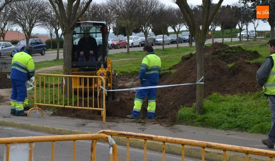 Operarios de Aqualia estuvieron trabajando a ambos lados de la vía en las inmediaciones del Árbol Gordo