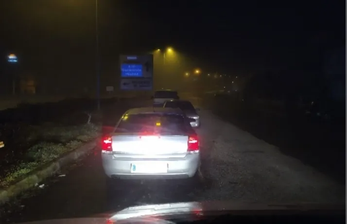 Este conductor profesional circuló paralelo al vehículo infractor, han relatado las mismas fuentes, "haciéndole constantes cambios de luces e intentando que el conductor infractor se detuviera", pero al ver que "no se daba por aludido o que no comprendía lo que quería indicarle (hay que tener en cuenta que era de noche y que había niebla)", han concretado las mismas fuentes, "decidió adelantarse y estacionar su vehículo en un lugar adecuado para no crear riesgo a los demás conductores".