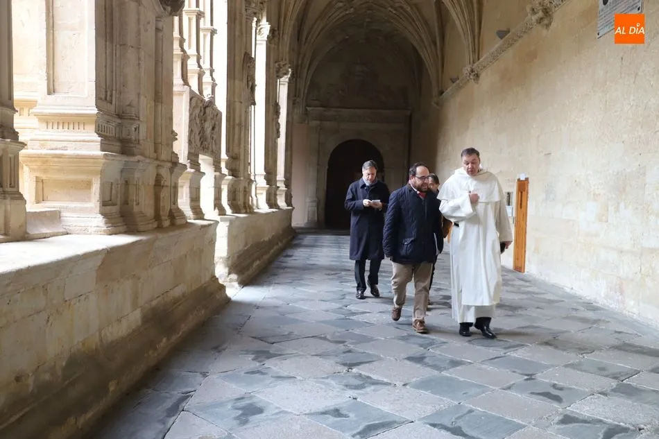 El alcalde de Salamanca, Carlos García Carbayo, acompañado por el que hasta ahora fuera el prior de los Dominicos en la ciudad, Ricardo de Luis Carballada, el concejal de Turismo, Fernando Castaño, y el concejal de Fomento y Patrimonio, Daniel Llanos, ha visitado hoy la nueva musealización del Convento de San Esteban, con la que se completa la intervención