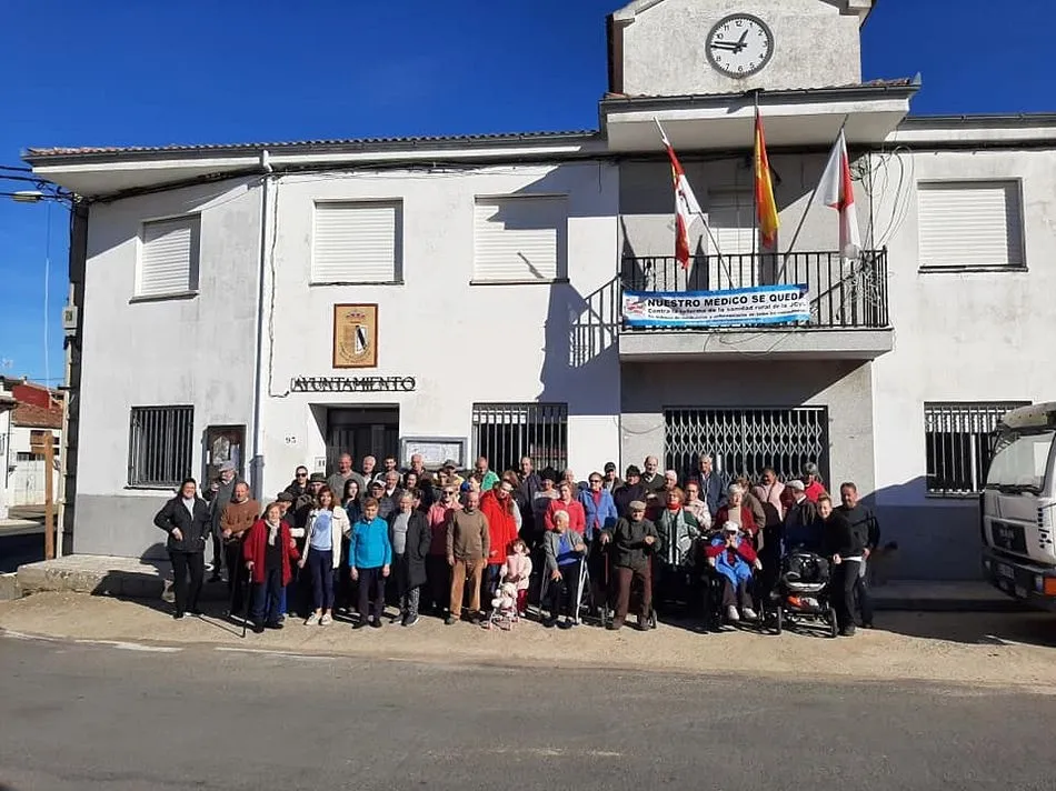 s pequeñas. ?Nada de España vaciada? España vacilada? diría yo?, publican en redes sociales los propios manifestantes. Se ha colgado una pancarta en el Consistorio en la que se puede leer: ?Nuestro médico se queda. Contra la reforma de la sanidad rural de la JCyL?. desde la localidad señalan que la manifestación tendrá lugar cada miércoles a la misma hora mientras la Junta mantenga la reforma en marcha.