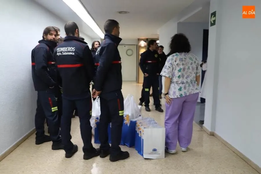 Agentes del Servicio de Prevención, Extinción de Incendios y Salvamentos de Salamanca llevaban obsequios a los menores de la planta de Pediatría