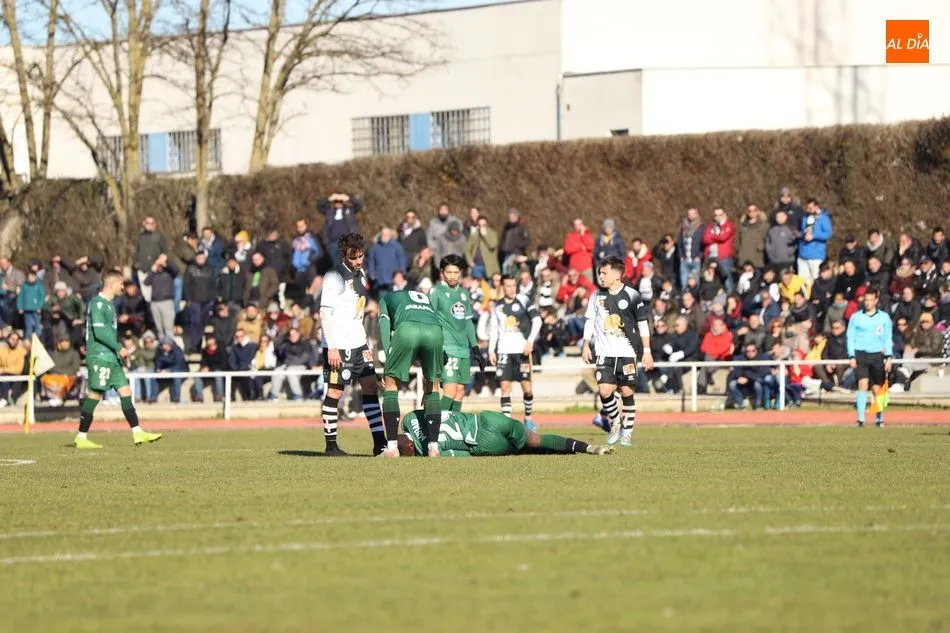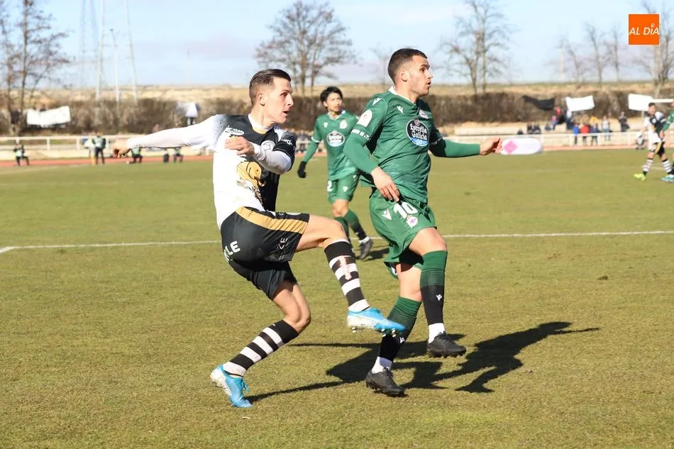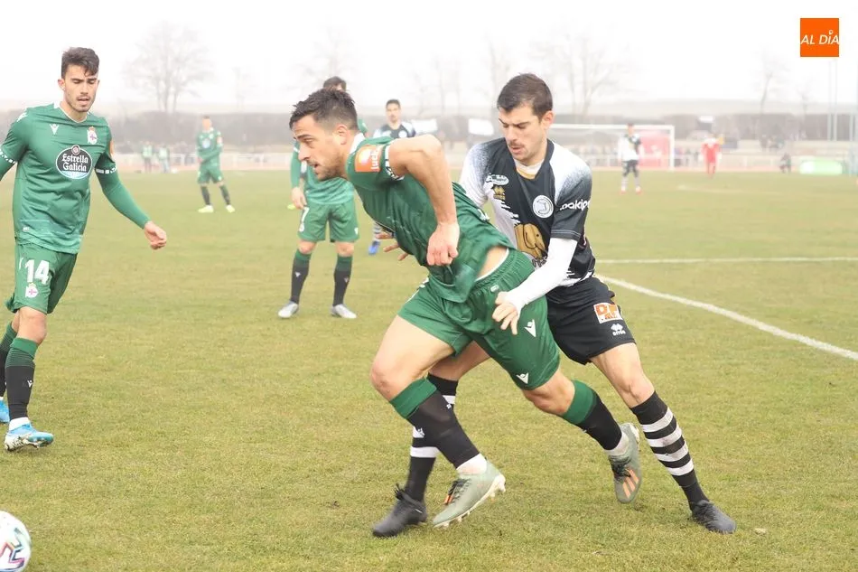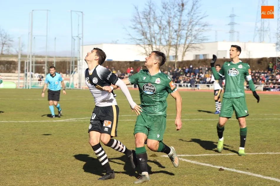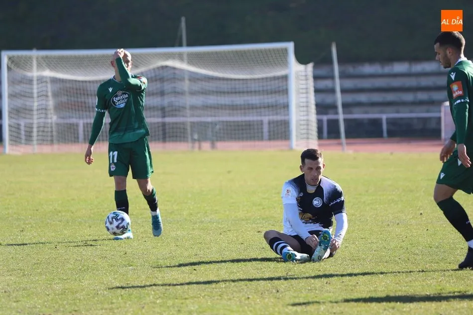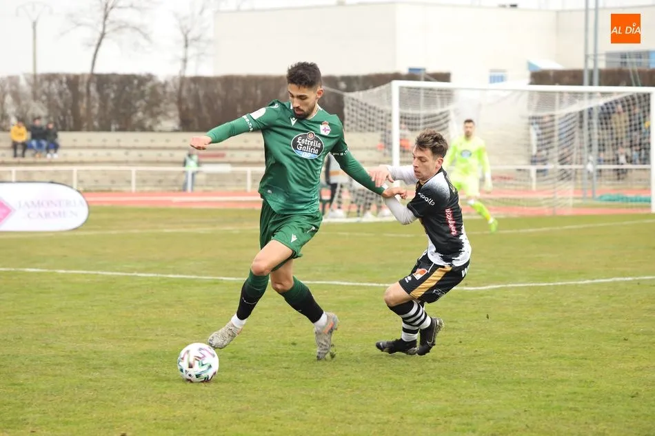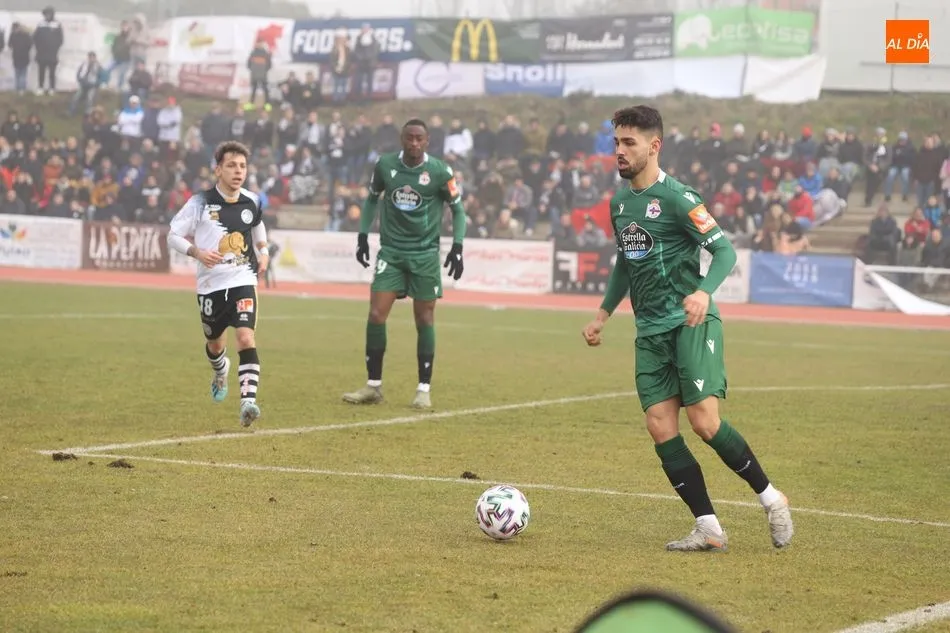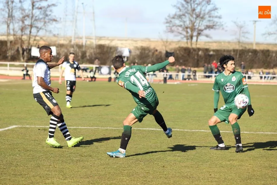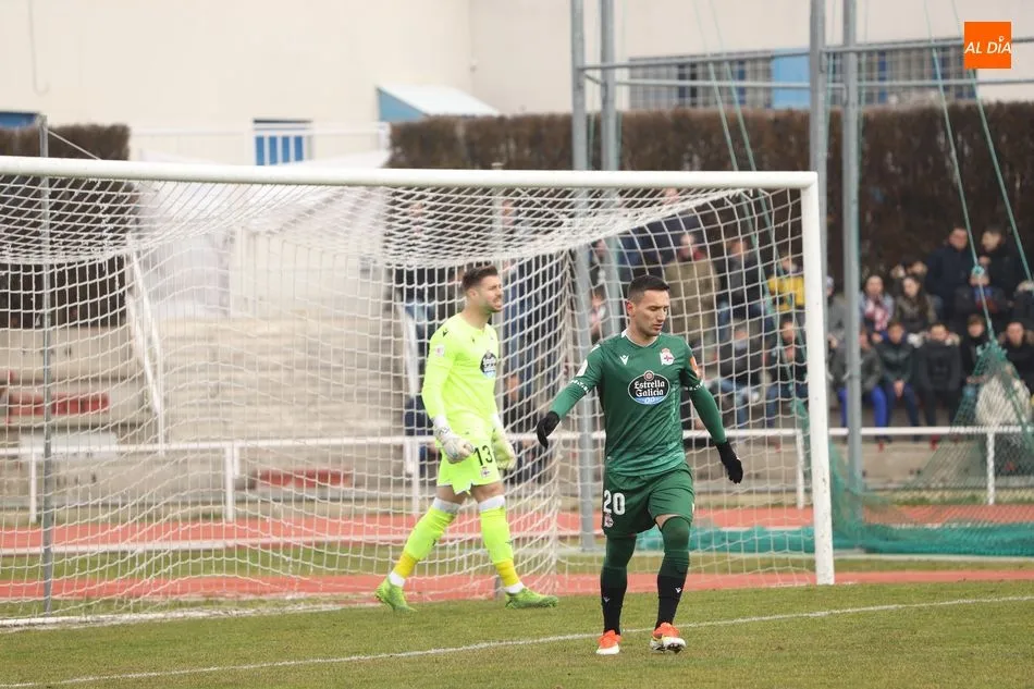 En el primero de ellos el remate salió flojo y Koke Vegas lo atrapó sin problemas, mientras que en el segundo, ya al borde del descanso, su remate de cabeza obligó a estirarse al portero deportivista. Tras esta ocasión, respondió Borja Valle para el cuadro gallego con un remate que sacó Brais en el uno contra uno.