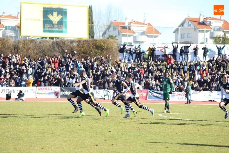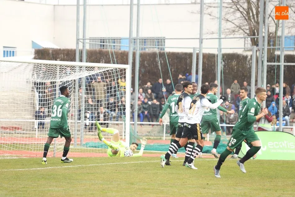 El cambio de nueve en Unionistas resultó ser fundamental, porque nada más saltar al campo Guille Andrés adelantó a su equipo con el primer tanto del partido. Un centro de Javi Navas desde la derecha era aprovechado por el delantero blanquinegro al primer palo para delirio de los cientos de aficionados salmantinos.