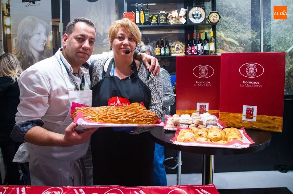 María Ángeles Hernández y Marcos Hernández, de Pastelerías La Madrileña, viajaron hasta el stand de 'Salamanca para comérsela' en Madrid Fusión para dar a conocer el 'Hornazo de Salamanca, Marca de Garantía'.