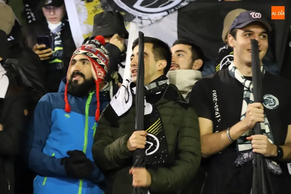 Durante el encuentro, los aficionados blanquinegros dictaron sentencia en referencia al lugar donde se debe disputar el partido de Copa del Rey ante el Real Madrid. Los seguidores dejaron claro su postura de que el encuentro se juegue en las Pistas mientras reprocharon a través de cánticos la postura mediadora del alcalde para que el encuentro se dispute en el Helmántico.