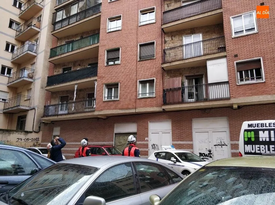 Una dotación de los Bomberos de Salamanca acudía al lugar para recoger trozos de tejas e inspeccionar el edificio