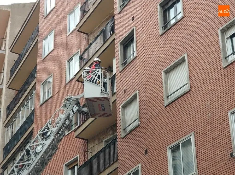 Los Bomberos del Ayuntamiento de Salamanca han acudido este miércoles, poco después de las 13.00 horas, a la calle Cepeda, entre las avenidas de los Maristas y de Filiberto Villalobos, en la trasera de la Escuela de Arte y Superior de Conservación y Restauración de Salamanca, como consecuencia de un aviso por un desprendimiento.