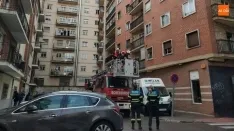 En el lugar, los profesionales citados retiraban trozos de tejas de un coche y desplegaban la escala móvil para inspeccionar el estado de la cornisa y el tejado del edificio.