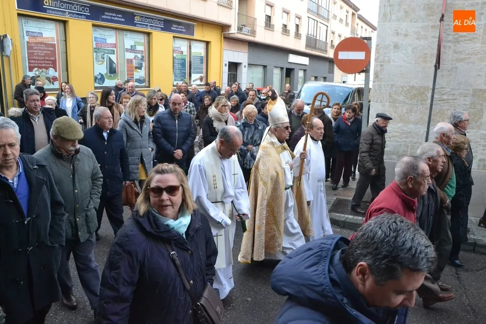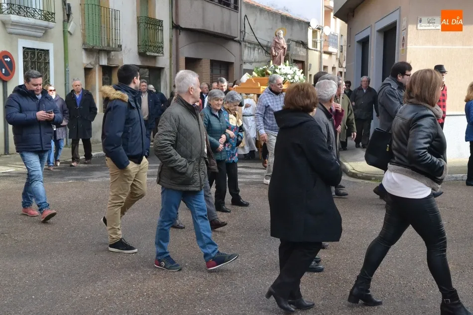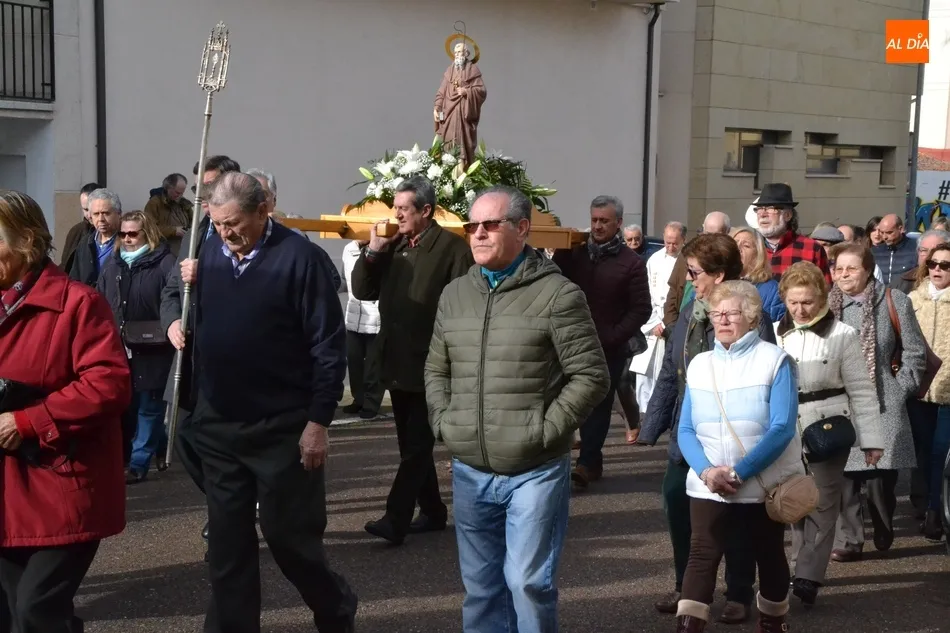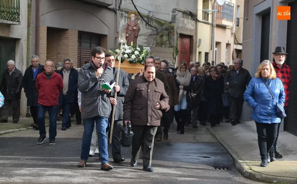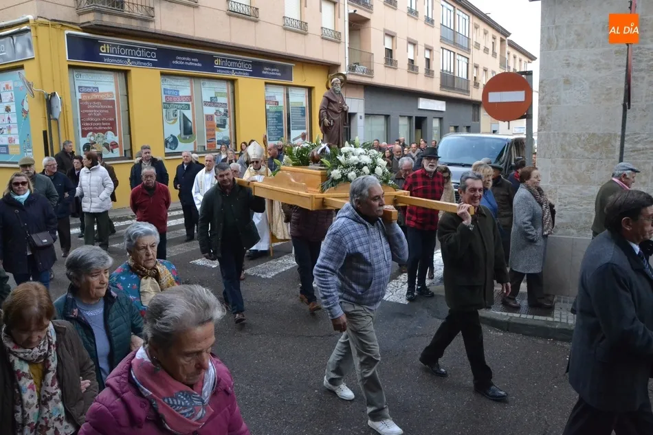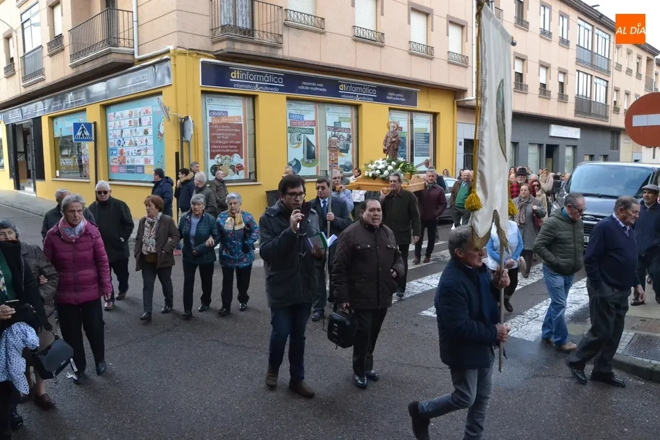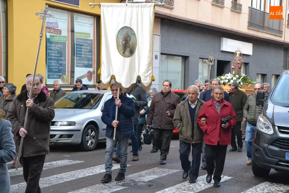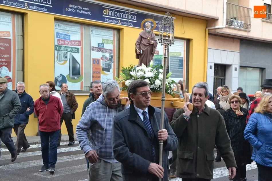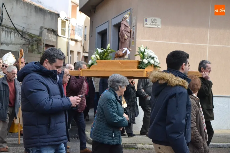 Finalizada esa bendición, fue turno de llevar a cabo la procesión de la imagen del Santo, que estuvo encabezada por el estandarte de la Cofradía y por el mayordomo de los actos de este año, Ángel Sánchez Montero. Esta procesión transcurrió por las calles San Antón, Canal, Mateo Hernández Vegas, Santa Clara y San Antón, para retornar a la Parroquia, todo ello bajo el control de la Policía Local. Una vez allí, se ofició una solemne eucaristía.