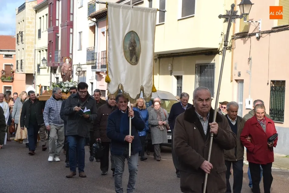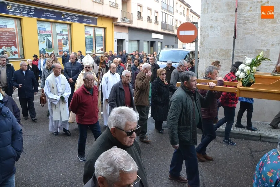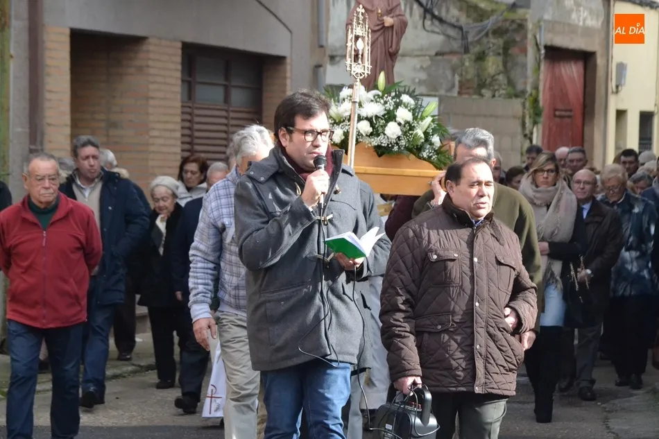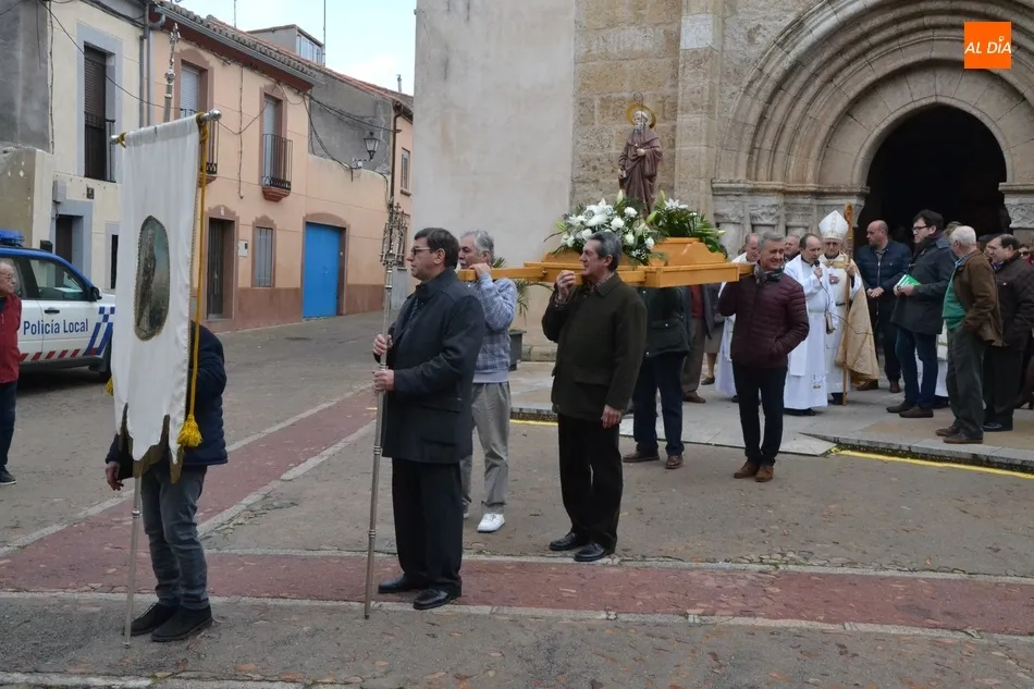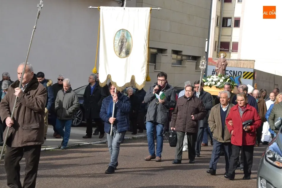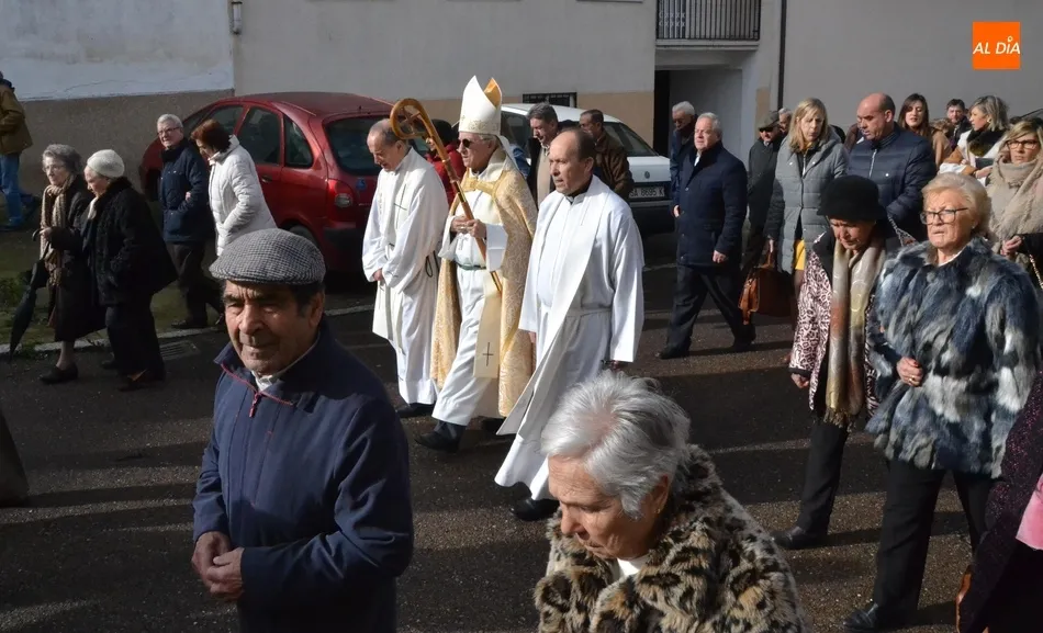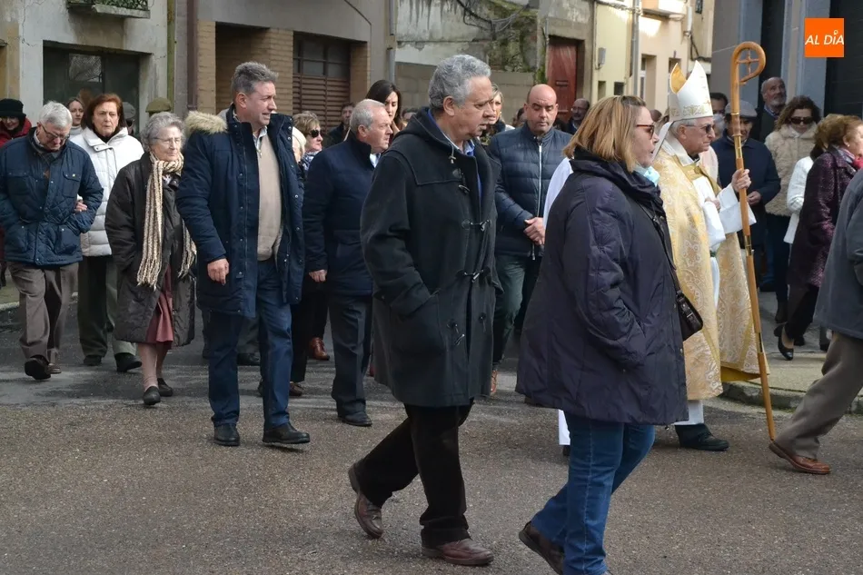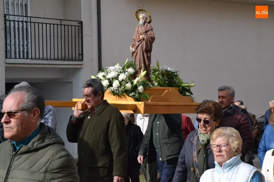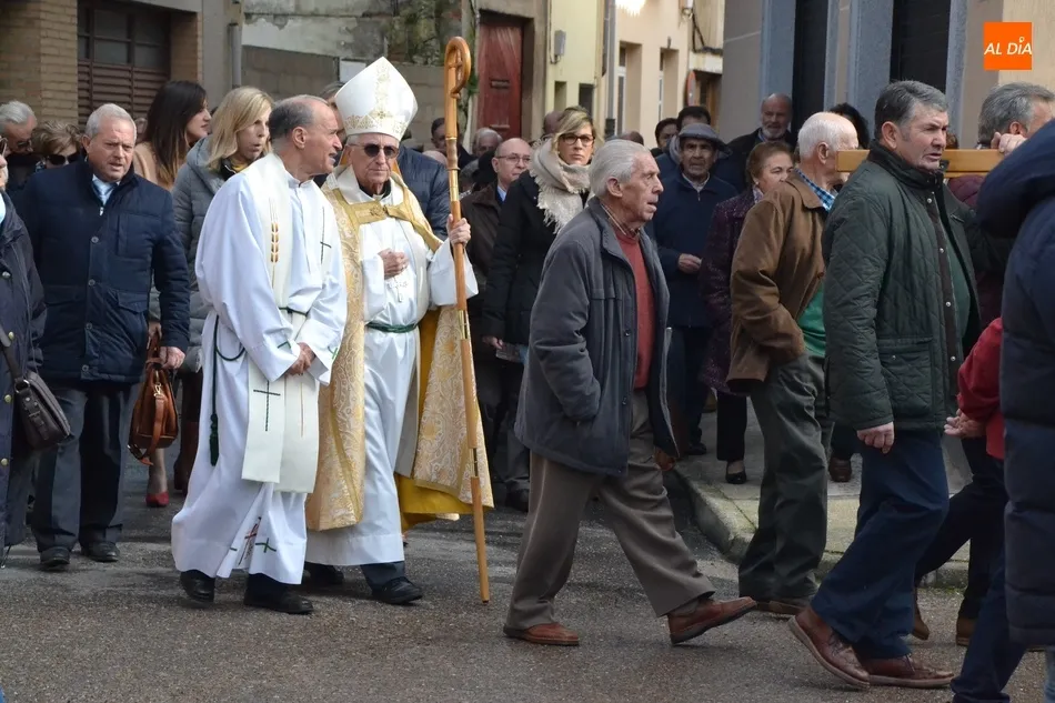 Finalizada esa bendición, fue turno de llevar a cabo la procesión de la imagen del Santo, que estuvo encabezada por el estandarte de la Cofradía y por el mayordomo de los actos de este año, Ángel Sánchez Montero. Esta procesión transcurrió por las calles San Antón, Canal, Mateo Hernández Vegas, Santa Clara y San Antón, para retornar a la Parroquia, todo ello bajo el control de la Policía Local. Una vez allí, se ofició una solemne eucaristía.