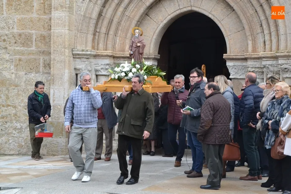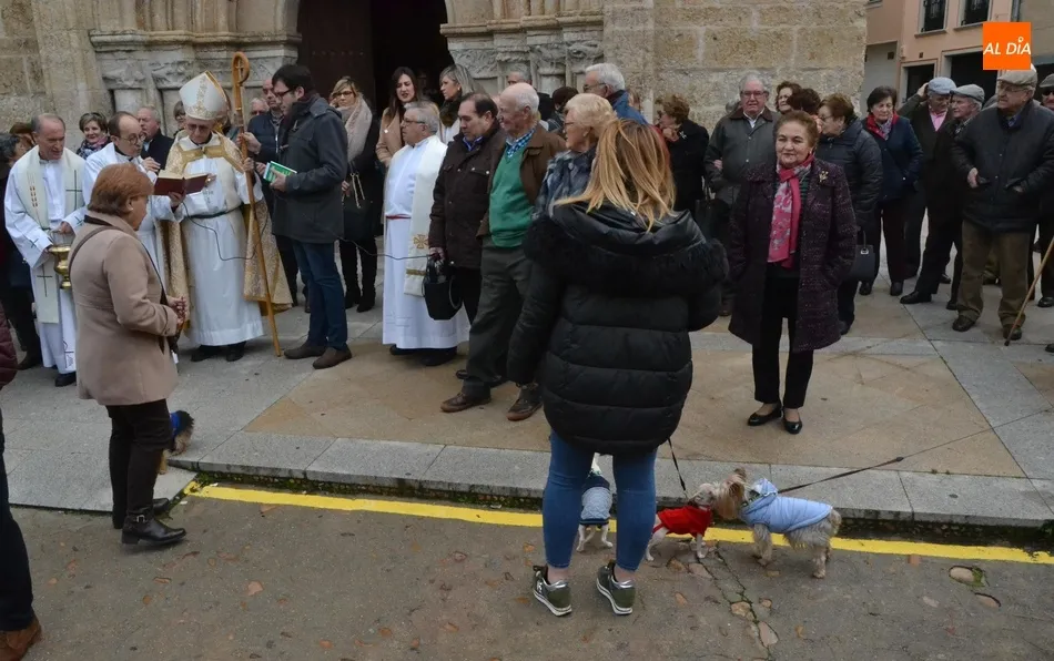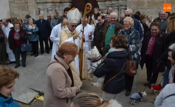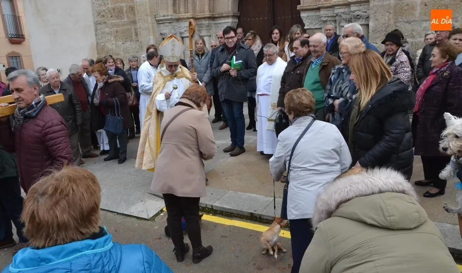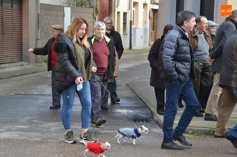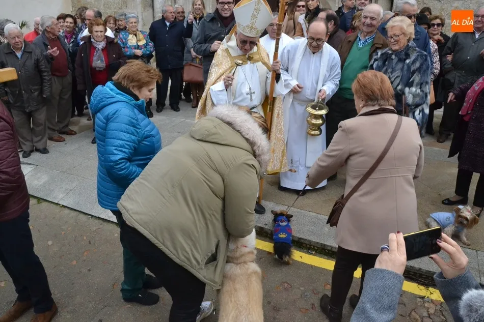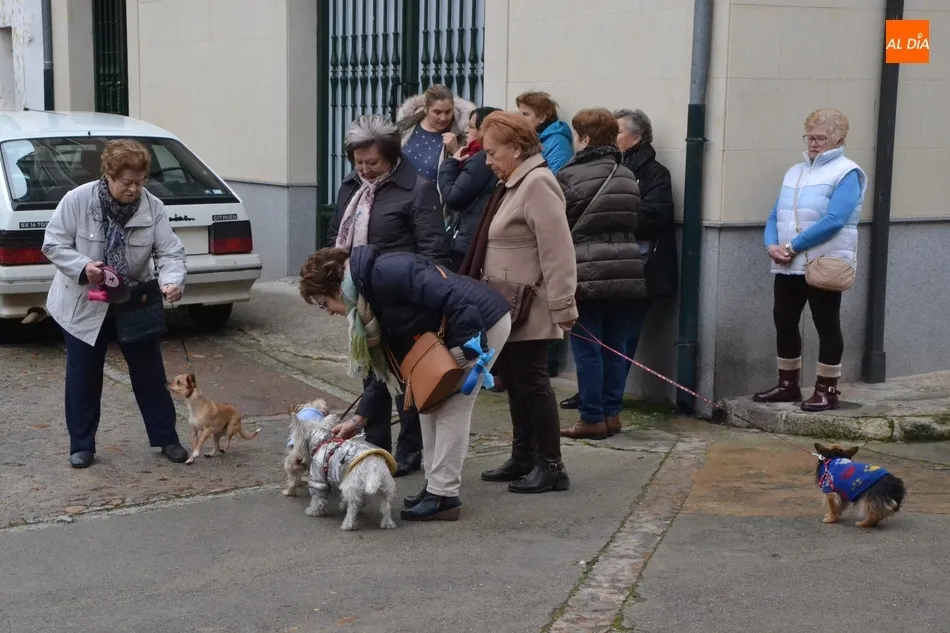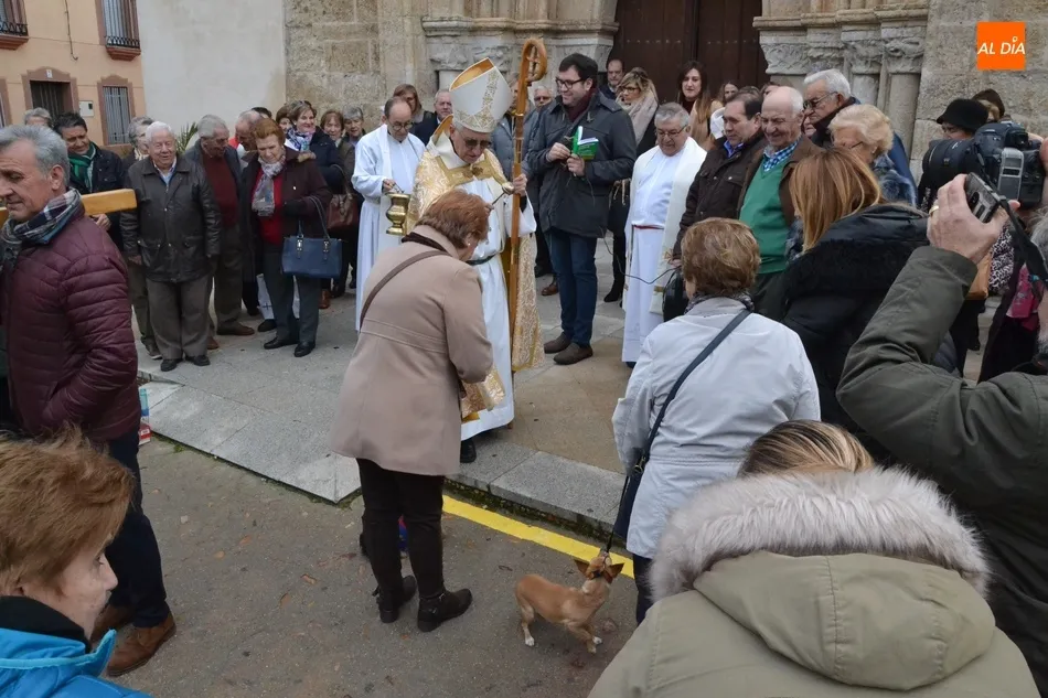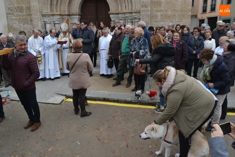 Estos actos arrancaron al mediodía, con la bendición por tercer año consecutivo a las puertas del templo de los animales que llevaron hasta allí sus dueños. Este año, Jesús García Burillo bendijo en concreto a 8 perros (cuyos tamaños eran de lo más variado) así como a un pájaro en una jaula.