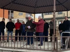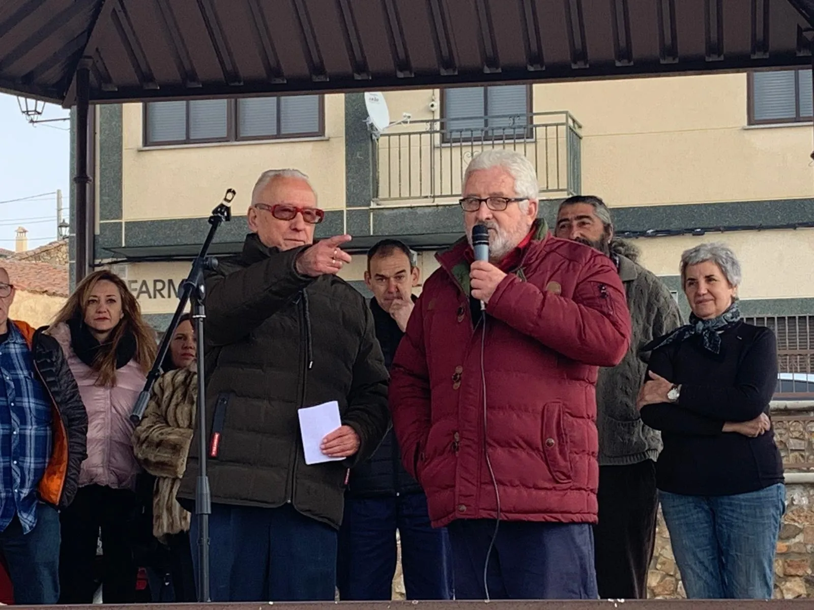El emblemático y querido maestro del Colegio de Galinduste, Tomás García, tuvo el honor de ser el pregonero de la matanza tradicional