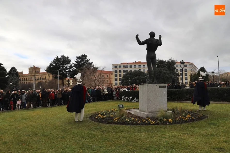 El homenaje, en el que han estado presentes entre otros el alcalde de Salamanca, Carlos García Carbayo, acompañado por miembros de la Corporación Municipal, familiares del diestro, otras autoridades y personas relacionadas con el mundo del toro, ha comenzado con el rezo de un responso a cargo del capellán de la Plaza de Toros, Constantino García, para continuar con la colocación de un ramo de flores junto a la escultura del matador.