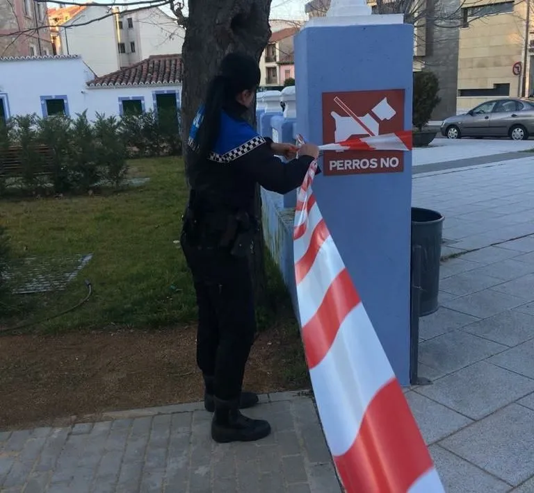 La colocación de las cintas en las entradas de ambos parques para señalar la prohibición de acceso fue llevada a cabo a media tarde del domingo por parte de la patrulla de servicio de la Policía Local. Hay que apuntar que a lo largo de la tarde se registraron algunas incidencias en Ciudad Rodrigo por culpa del viento, como por ejemplo la caída de tejas de edificios.