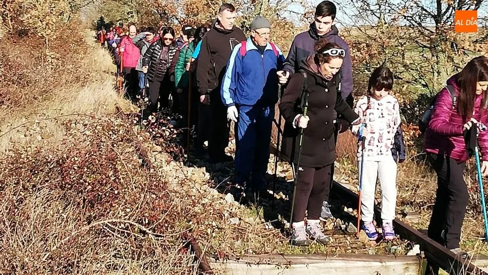 La ruta les llevó por el Camino de San Pedro y el camino de Valdebargancía hasta llegar a la vía férrea de la que forma parte el Puente de Hierro, uno de los 20 puentes de la línea La Fuente de San Esteban-Barca de Alva construidos a finales del siglo XIX. Con el paseo por la caja de la vía los senderistas pretendían reivindicar la recuperación de esta importante infraestructura, Bien de Interés Cultural con categoría de Monumento. "A nuestra manera queríamos denunciar el abandono que sufre esta vía desde su cierre e instar a las instituciones a su implicación en la limpieza y conservación de la misma y que todos podamos disfrutar de ella" explica Javier Martín, presidente del club de senderismo.