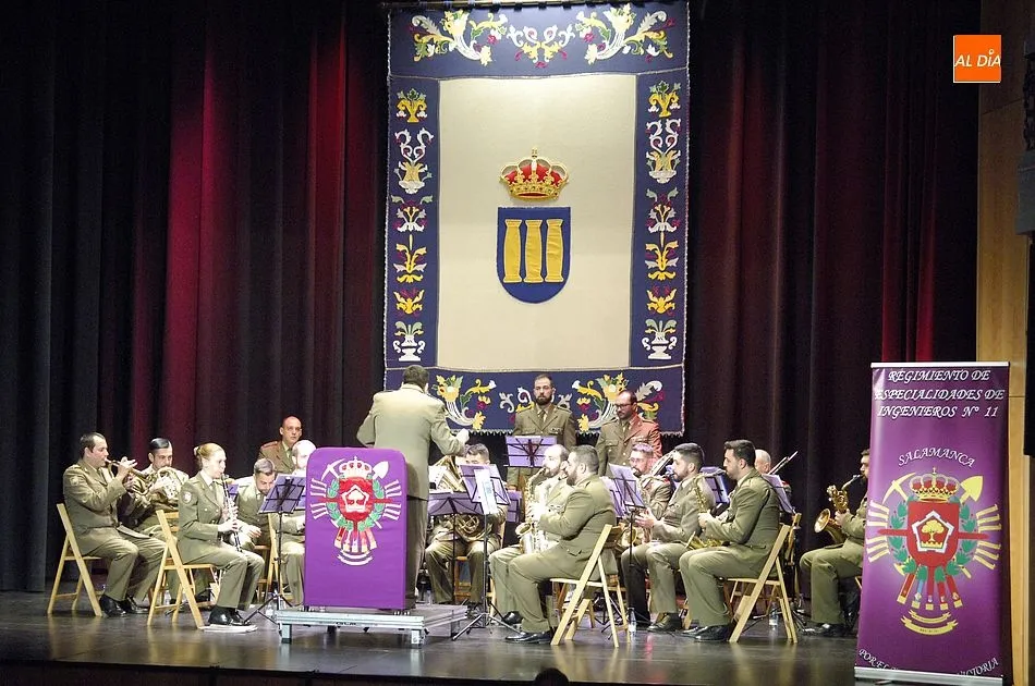 Concluido su agradecimiento, llegó la hora del concierto, que este año corrió a cargo de la Banda del Regimiento de Ingenieros Nº11 de Salamanca, que ofreció bajo la dirección del Cabo Don Jesús Albín Martín las siguientes piezas: Ingenieros Españoles, San Fernando, Ganando Barlovento, Concierto de Aranjuez, Por tierras charras, Amparito Roca, El gato montés, El novio de la muerte y Orgía dorada. Como sorpresa final, la Banda interpretó el Forastero, para seguir calentando motores de cara al Carnaval 2020.