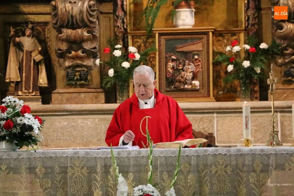 Antes de que diera comienzo la eucaristía, el alcalde de la localidad, Juan Ángel Gorjón, pronunció unas palabras en la iglesia dirigiéndose a todos los vecinos para felicitarles y desearles un buen día festivo.
